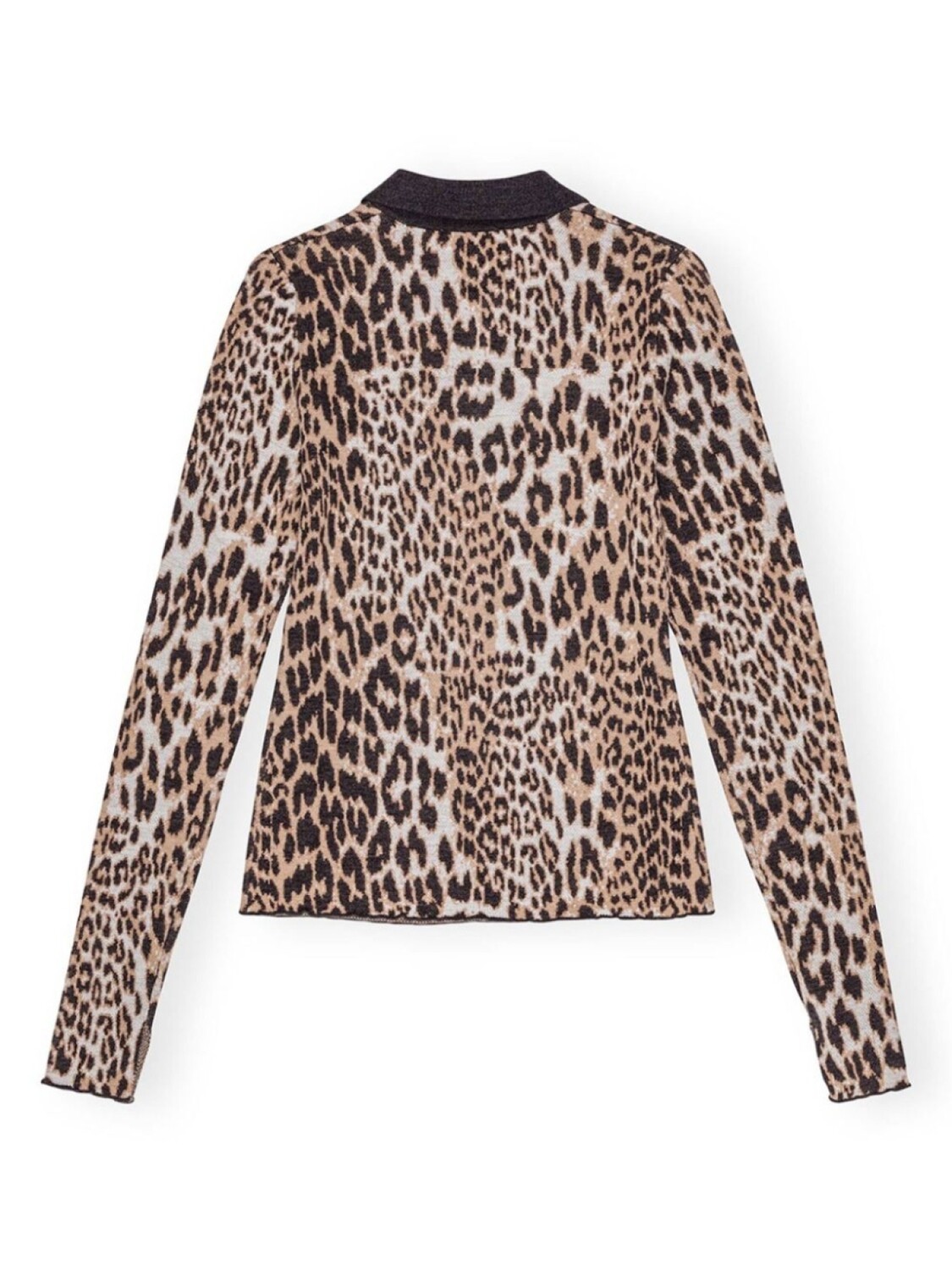 Топ с длинными рукавами и леопардовым принтом GANNI, коричневый