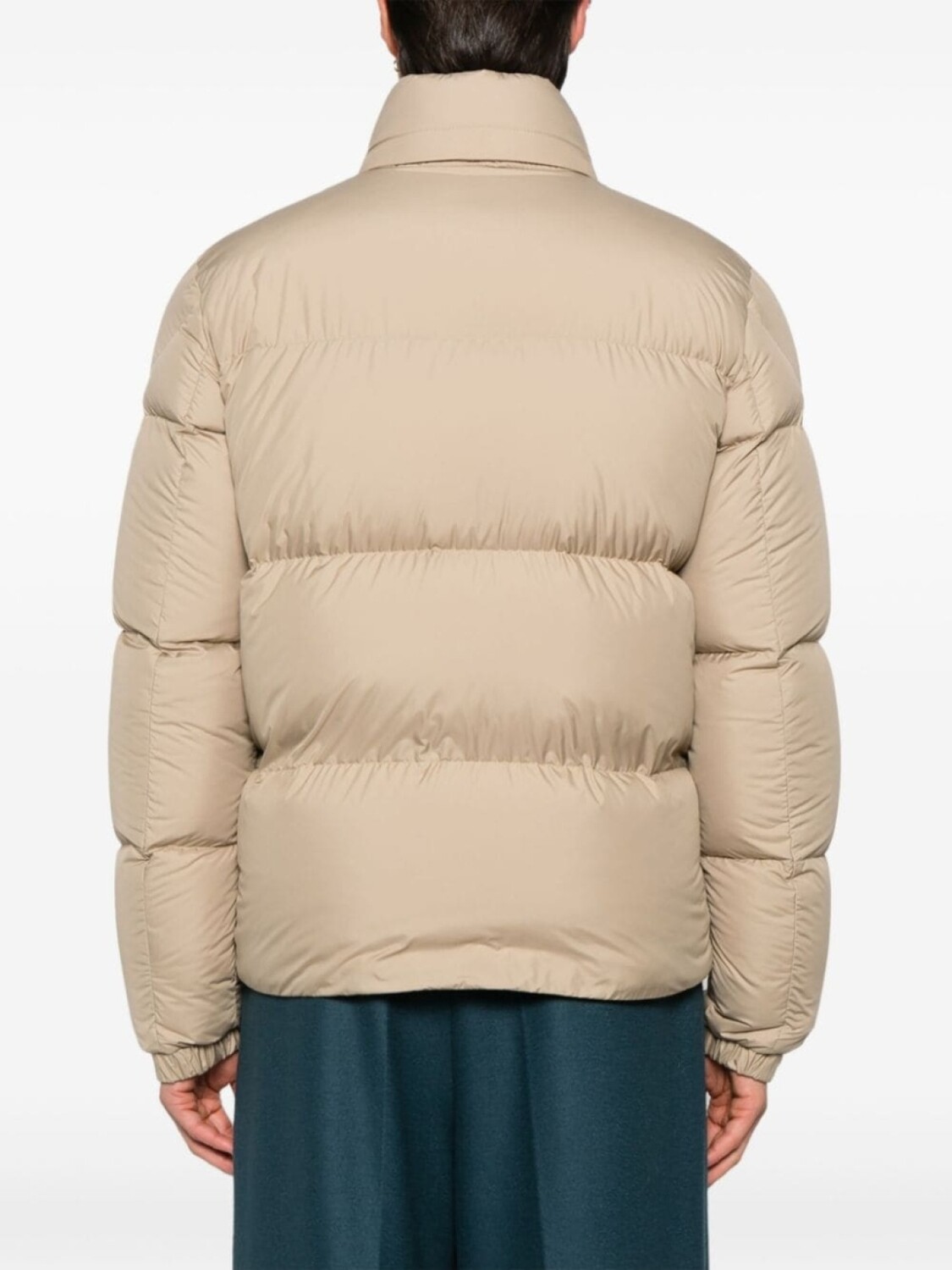 Подробнее о товаре: • бежевый • гусиный пух • плотный внешний материал • кожаная отделка • дутый материал • стеганная модель • водоотталкивающий материал • двусторонняя молния спереди • воротник-стойка • потайной капюшон • длинные рукава • нашивка с логотипом на рукаве • манжеты с застежкой на кнопки • карманы на молнии спереди • стеганая подкладка • внутренний карман на молнии • резинки с застежкой тогл внутри • прямой подол