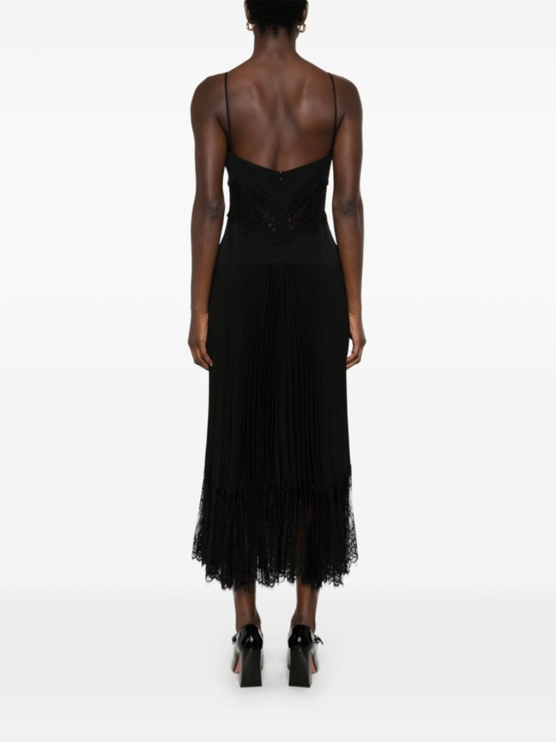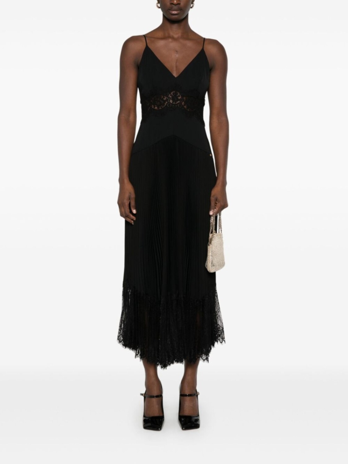 Черный, потайная застежка на молнии сзади, V-образный вырез, тонкие бретели, плиссированная юбка