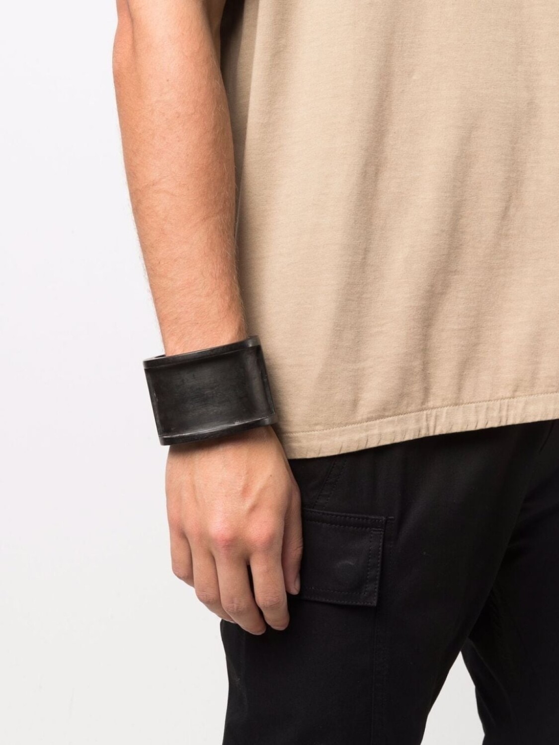 Матовое покрытие, дизайн без застежки и массивное кольцо. Цвет: черный.