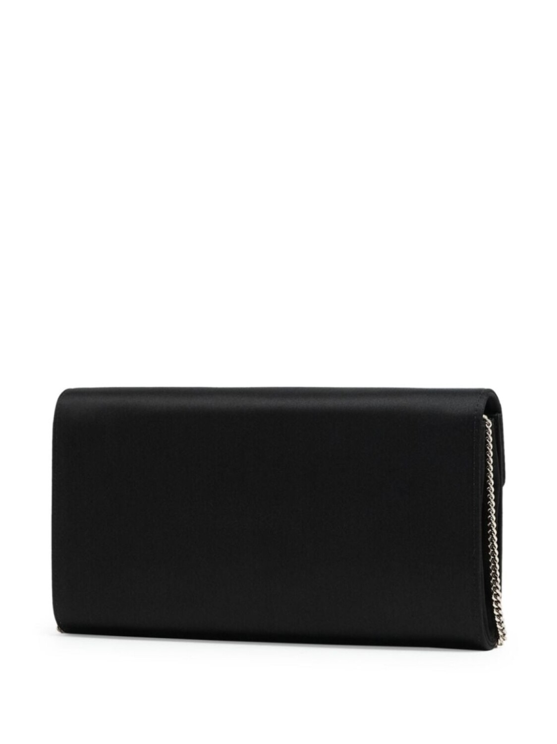 Черный, вставка с камнями, сатиновая фактура, нашивка с логотипом внутри, откидной клапан, ремешок-цепочка на плечо и основное отделение.