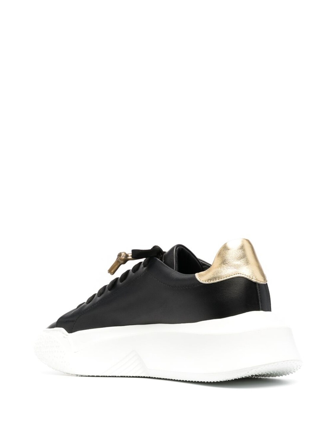 Логотип сбоку, контрастный задник, шнуровка спереди, закругленный носок и плоская подошва.