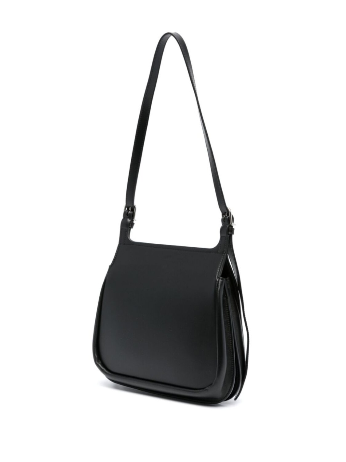 Черный, телячья кожа, гладкая текстура кожи, строчка в тон, D-образная фурнитура, серебристая фурнитура, регулируемая ручка, откидной клапан на магните, несколько отделений и нашивка с логотипом внутри.