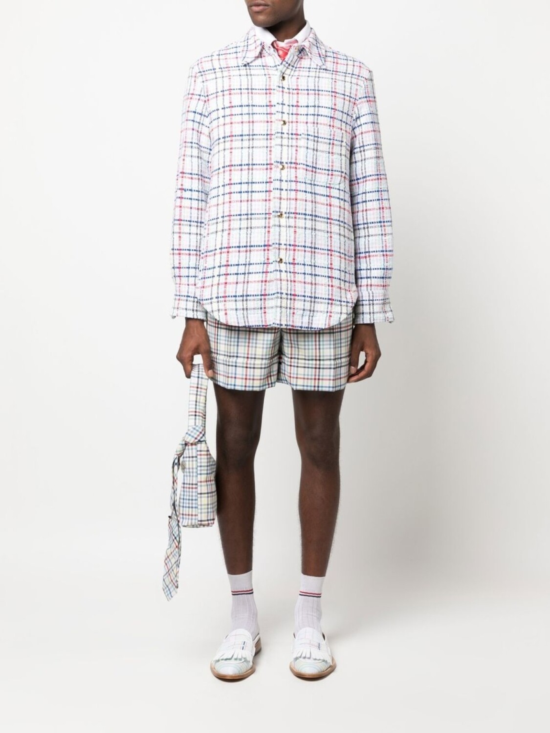 Верхняя рубашка из твида в клетку гингем Thom Browne, белый 190 160₽