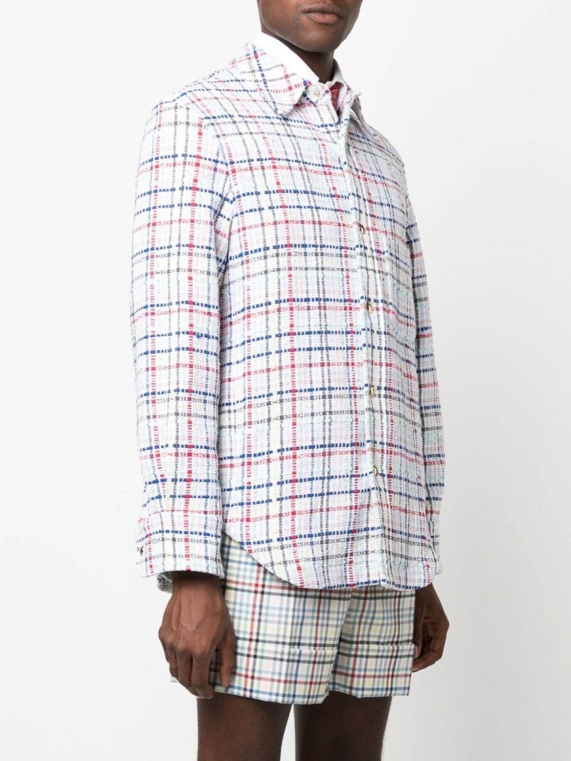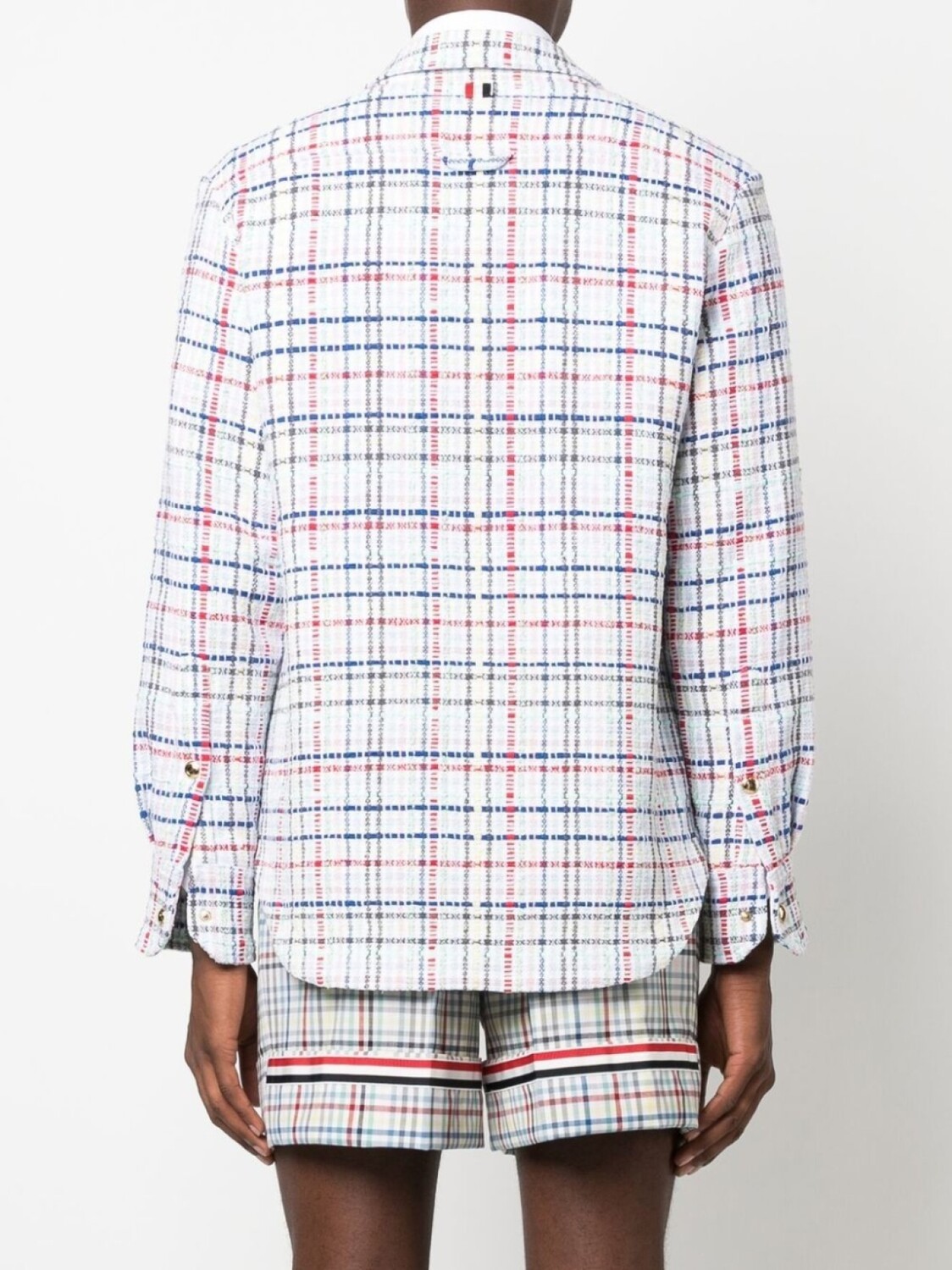 Верхняя рубашка из твида в клетку гингем Thom Browne, белый
