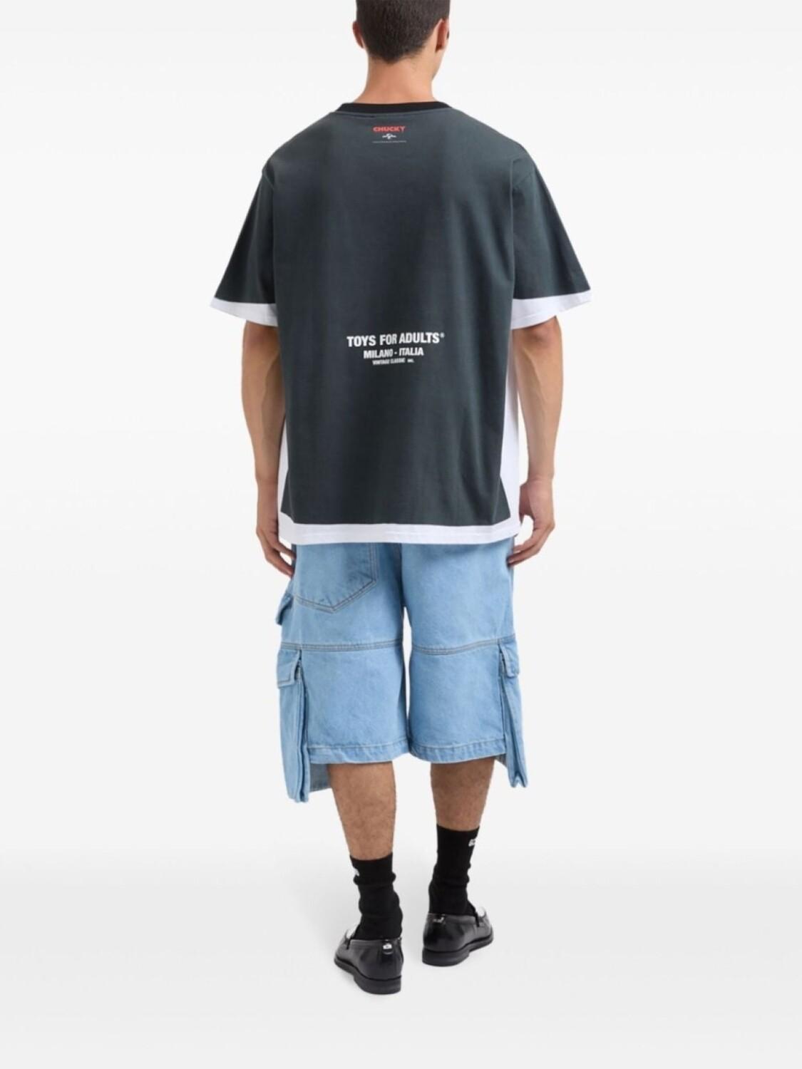 Черный, хлопок, логотип спереди, графичный принт спереди, принт с надписью сзади, круглый вырез, приспущенные плечи, короткие рукава, прямой подол
