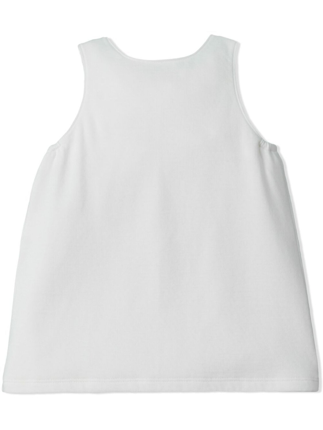 Расцветка Cloud White, хлопок, вышитый логотип спереди, круглый вырез, пуговичные застежки на плечах, без рукавов, А-образный силуэт и прямой подол.