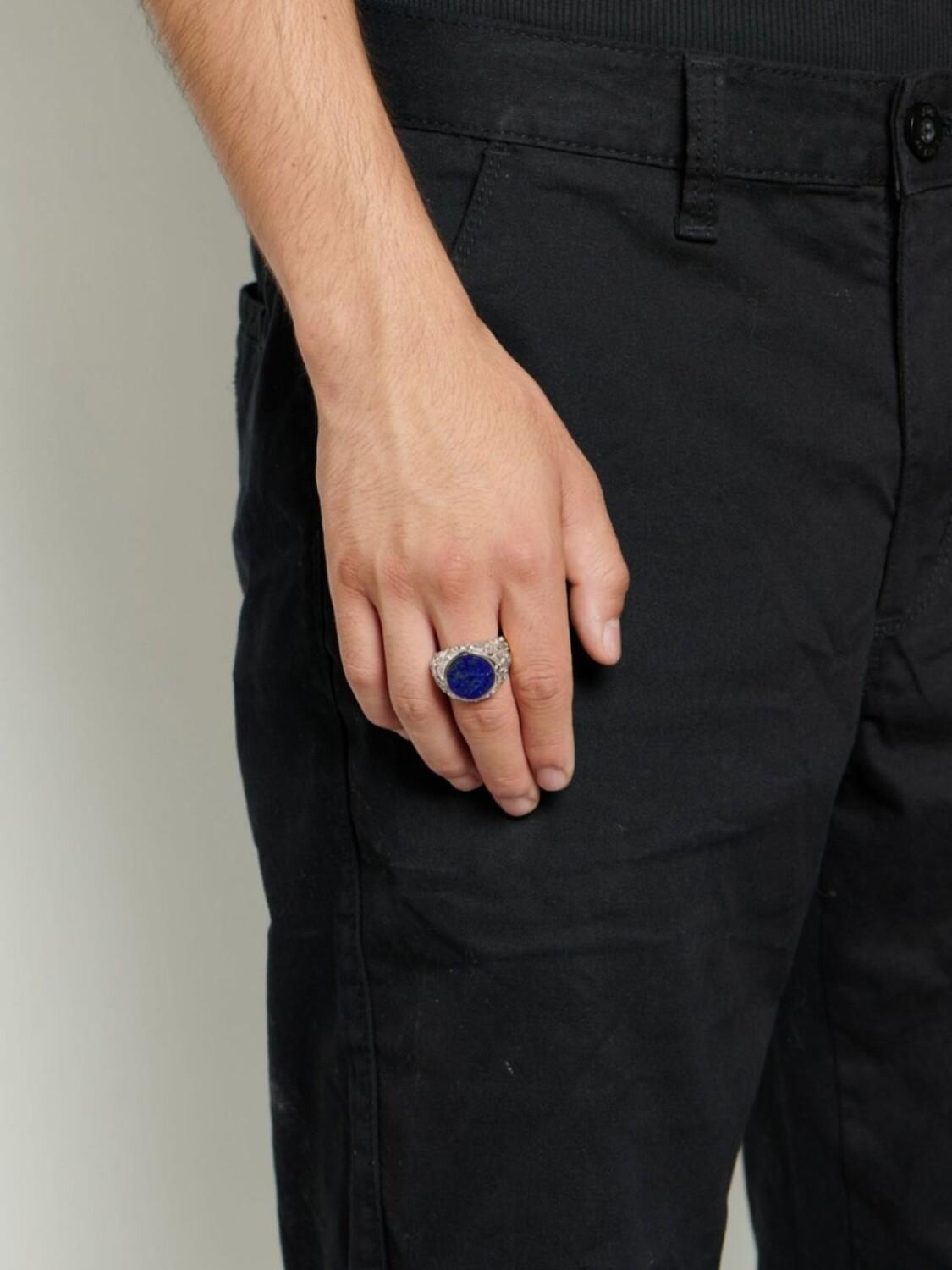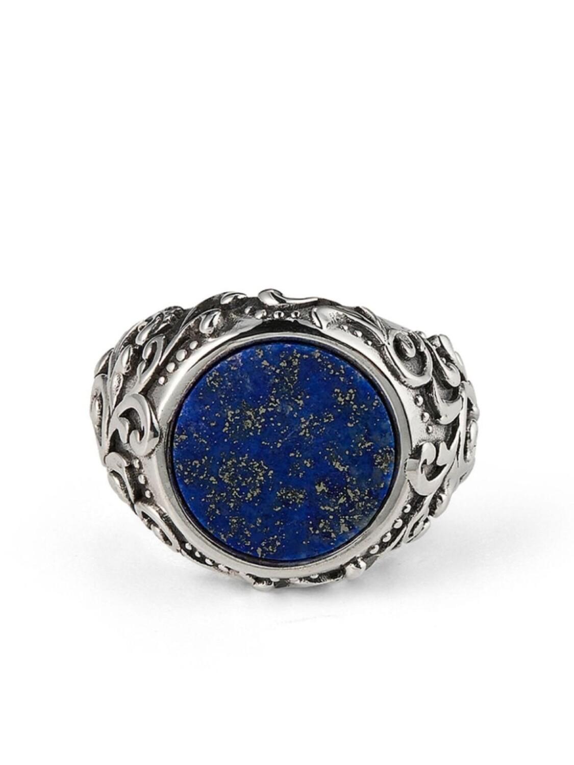 Серебристый, синий, серебро 925 пробы, лазурит, фактурная отделка, без застежки