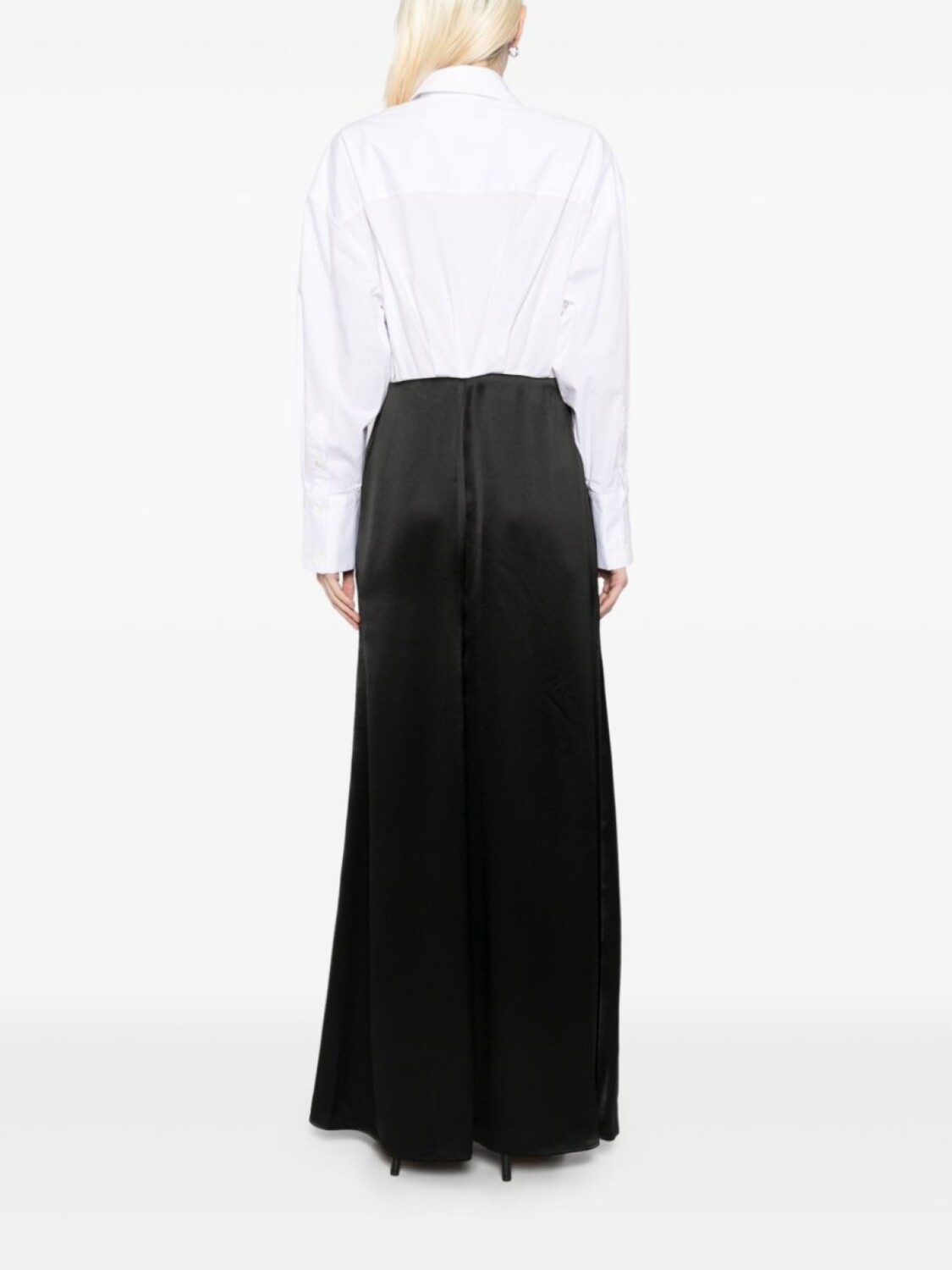 Черный, классический воротник, потайная пуговичная застежка спереди, потайная застежка на молнии сбоку, манжеты на пуговицах