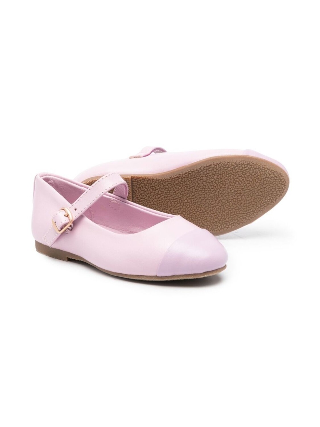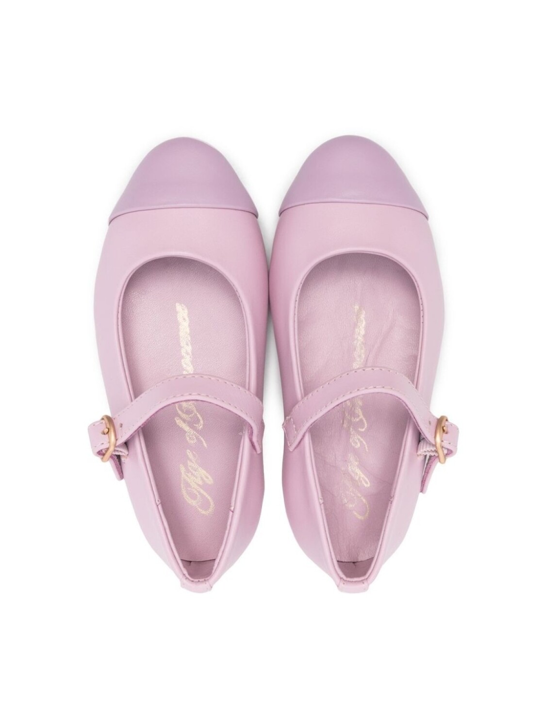 Сирень, кожа, миндалевидный носок, ремешок на щиколотке с пряжкой, кожаная стелька с логотипом и плоская резиновая подошва.