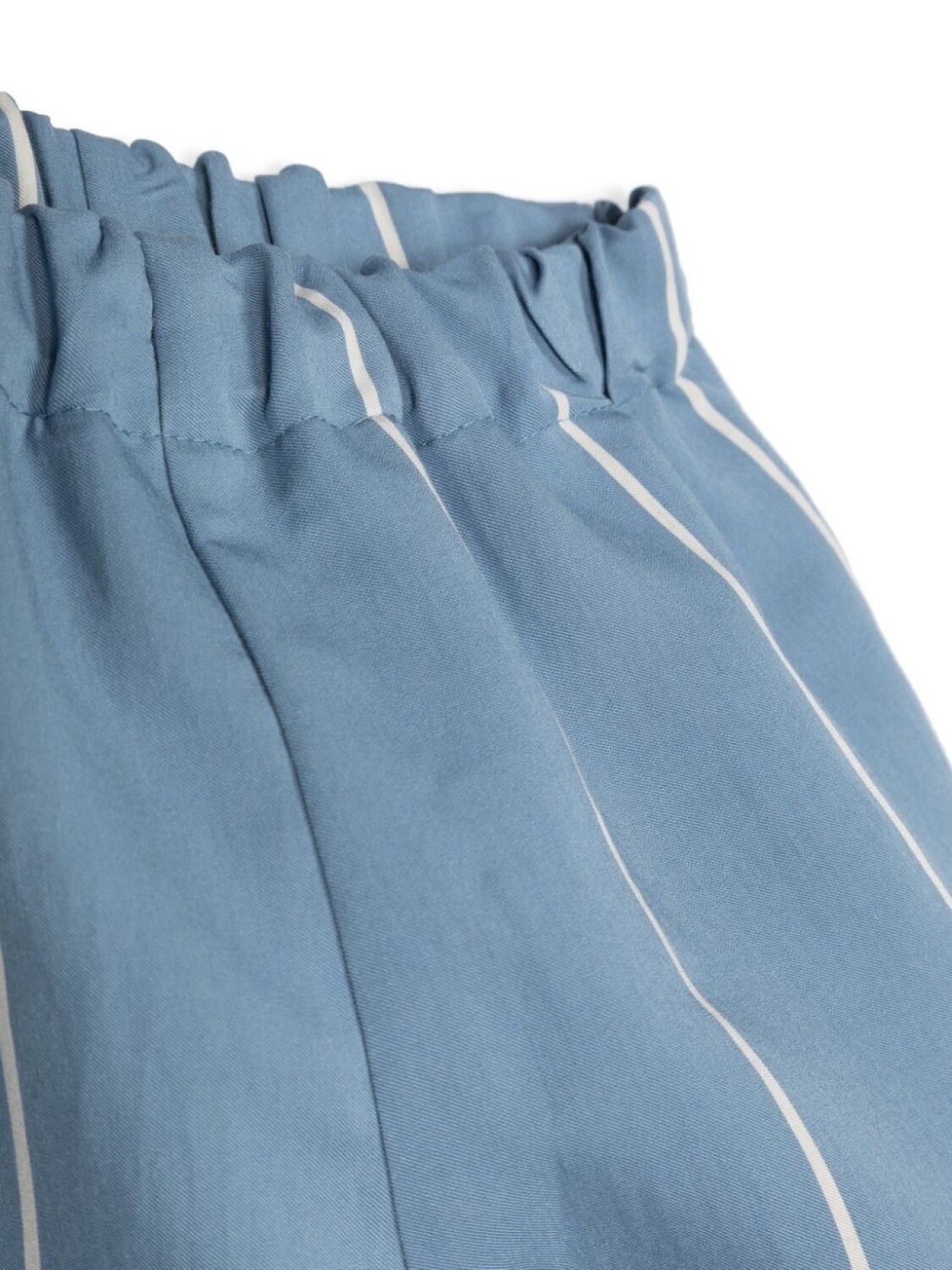 Синий/белый, средняя посадка, узор в вертикальную полоску, строчка в тон, эластичный пояс и прямой крой.