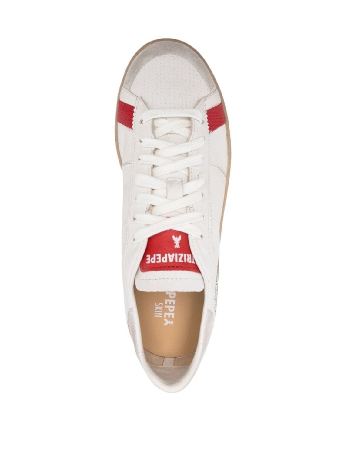 Подробнее о товаре: • белый • телячья кожа • гладкая текстура кожи • дизайн со вставками • шнуровка спереди • замшевые вставки • контрастный задник с логотипом • перфорация сбоку • нашивка с логотипом на язычке • контрастная отделка лентой • перфорированный носок • закругленный носок • кожаная стелька с логотипом • логотип на подошве • резиновая подошва • В комплект входит мешок-пыльник для хранения.