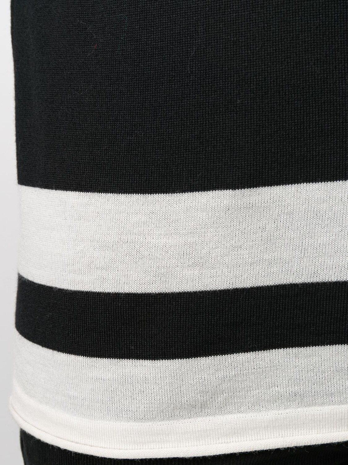 Джемпер с полосками от Paura. Высокая горловина, длинные рукава, узкий крой и подол и манжеты в рубчик.