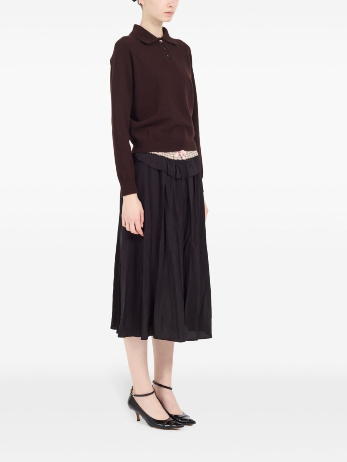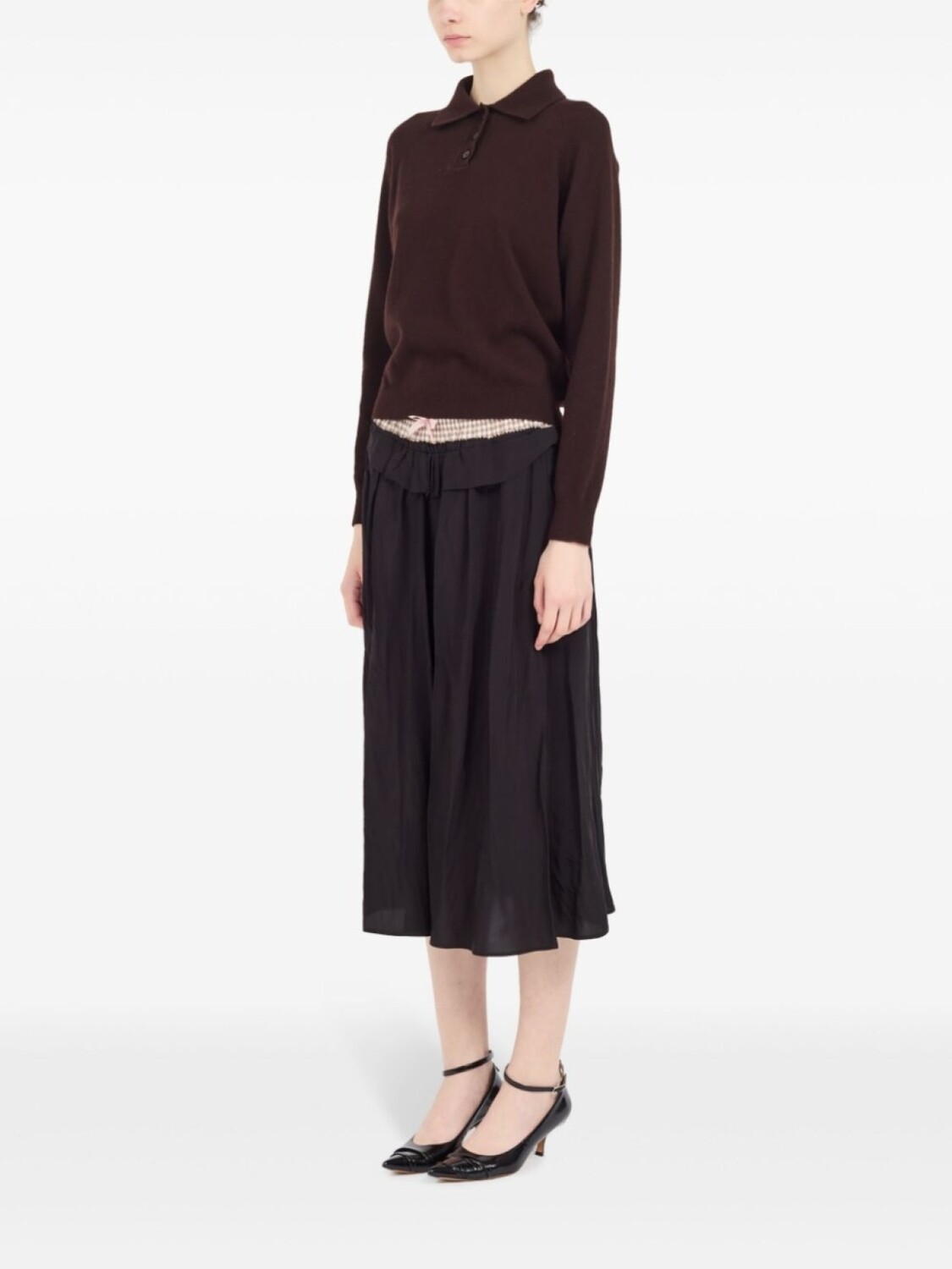 Топ в рубчик с воротником поло Maison Margiela, коричневый