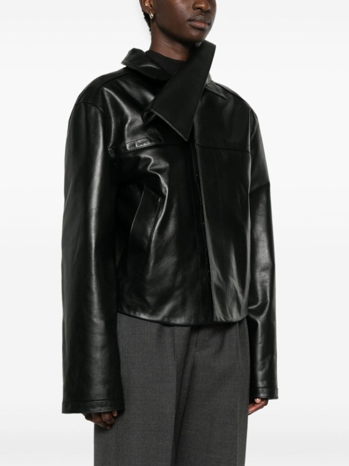 Кожаная куртка с воротником-шарфом ALAINPAUL, черный 392 889₽
