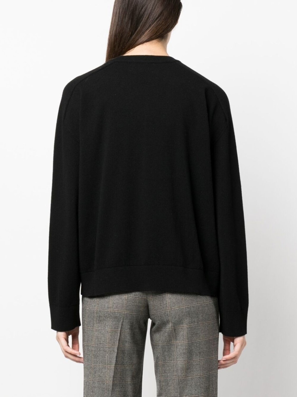 Черный, кашемир, V-образный вырез, прямой подол и длинные рукава.