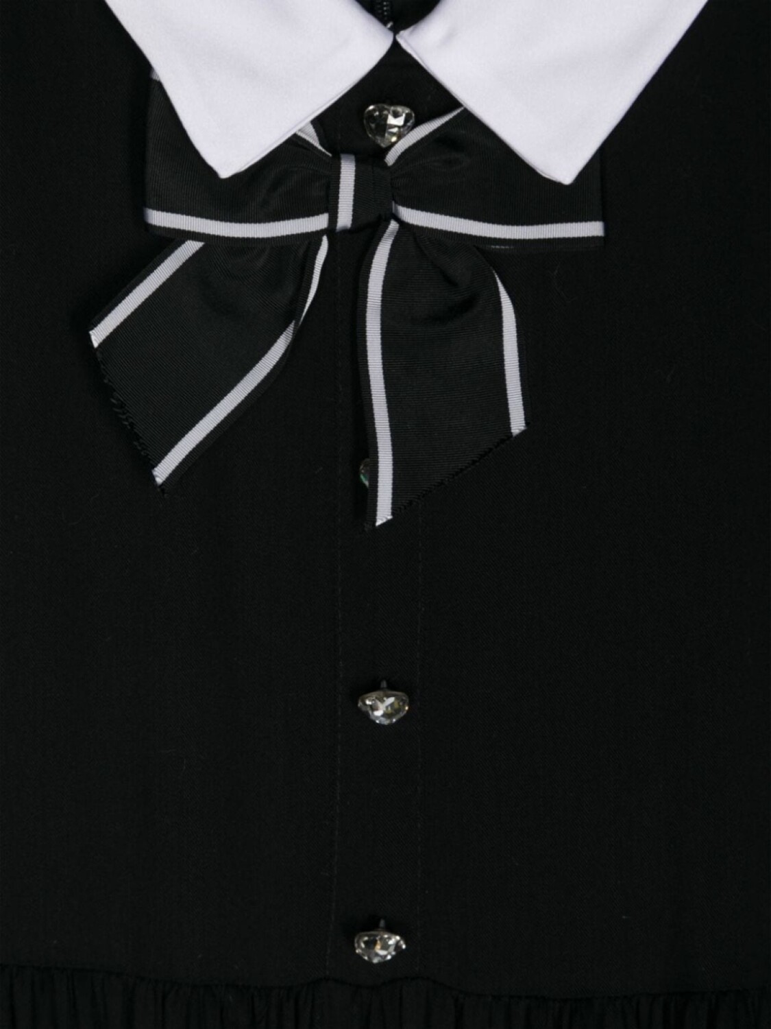 Черный/белый, хлопок, ткань с твиловым переплетением, бант, декоративные пуговицы, классический воротник, потайная застежка на молнии сзади, рукава-буфы, манжеты на пуговицах, ярусная юбка
