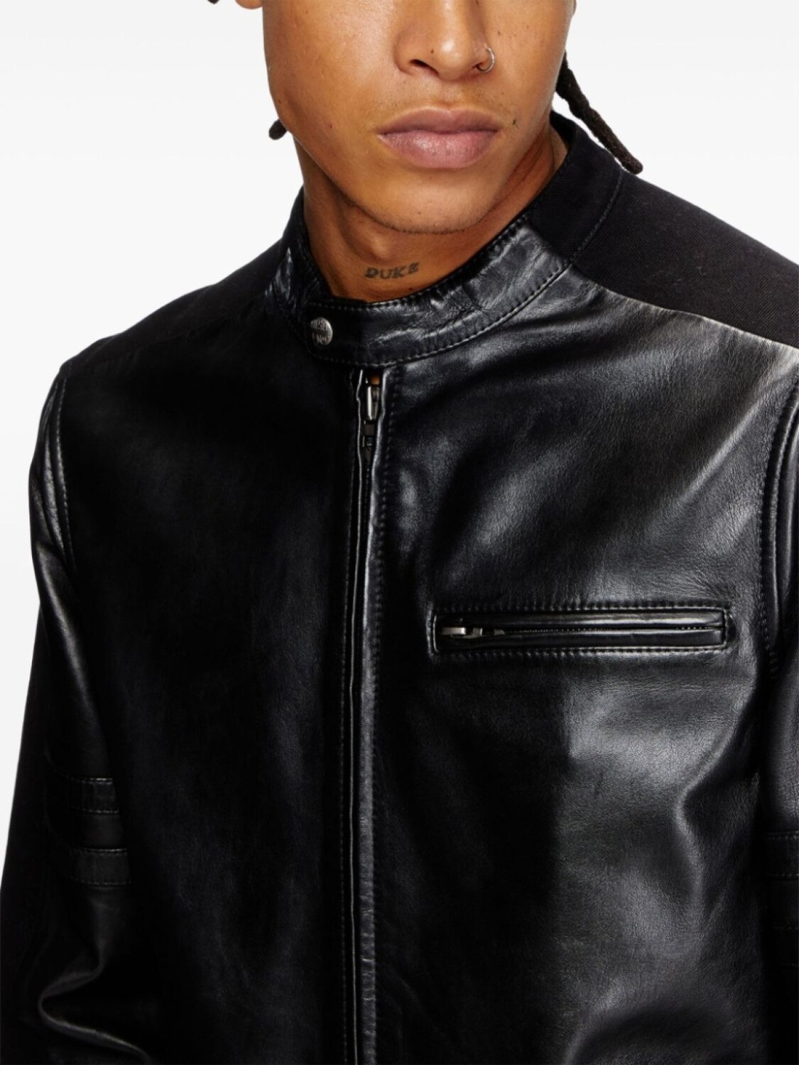 Подробнее о товаре: • черный • овечья кожа • дизайн со вставками • двусторонняя молния спереди • воротник-стойка • длинные рукава с манжетами на пуговицах • три кармана на молнии спереди • прямой подол • Кожа в составе этого товара сделана на фабрике, сертифицированной организациями Leather Working Group (LWG) или ICEC. Это гарантирует, что производитель минимизировал негативное влияние материала на окружающую среду.