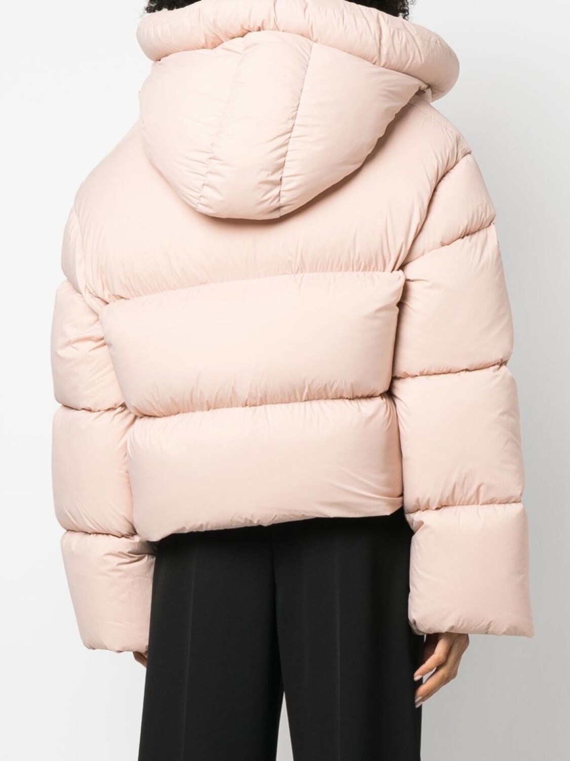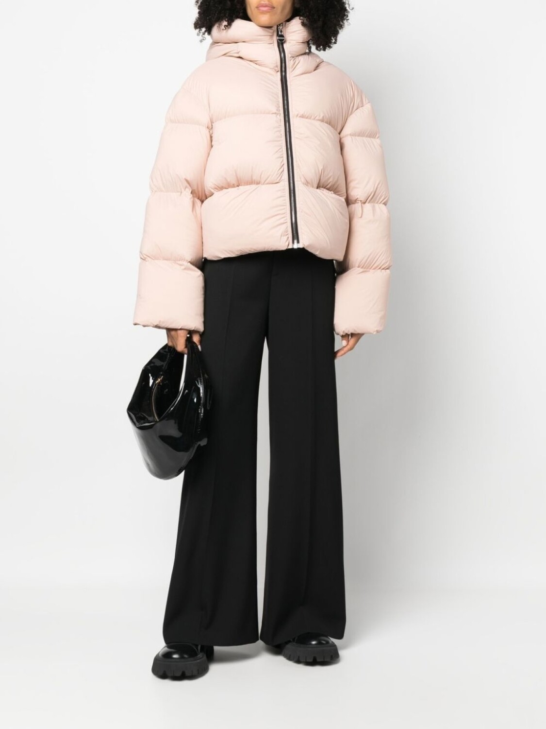 Светло-розовый, наполнитель из пуха и перьев, воротник-труба, объемный капюшон, застежка на молнии спереди, длинные рукава, эластичные манжеты, подол с кулиской, цельная подкладка, наполнитель из смеси пуха и пера и водоотталкивающее покрытие.