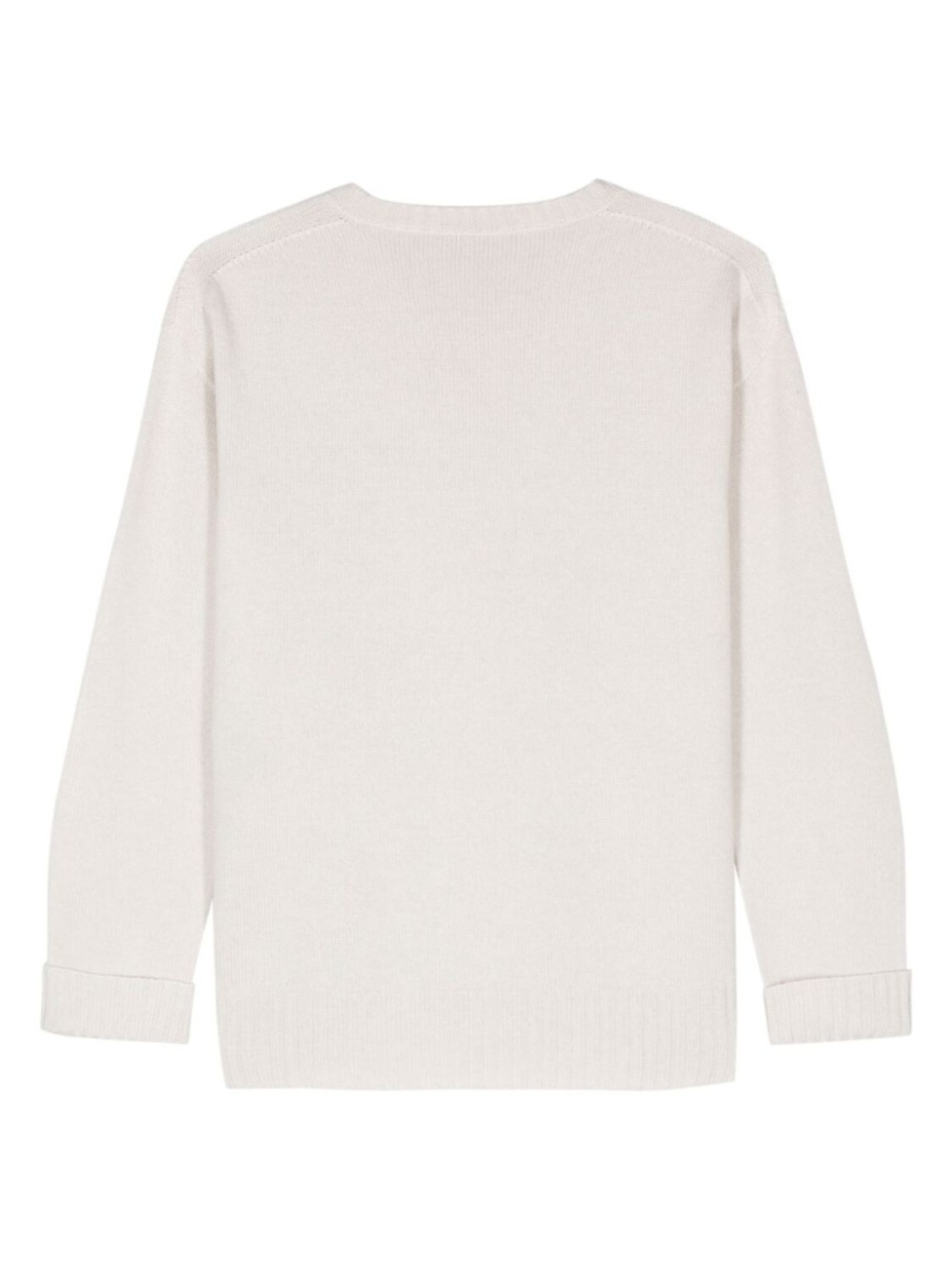 Бежевый, смесь шерсти и шелка, трикотаж в рубчик, круглый вырез, приспущенные плечи, длинные рукава, подвернутые манжеты, подол и манжеты в рубчик