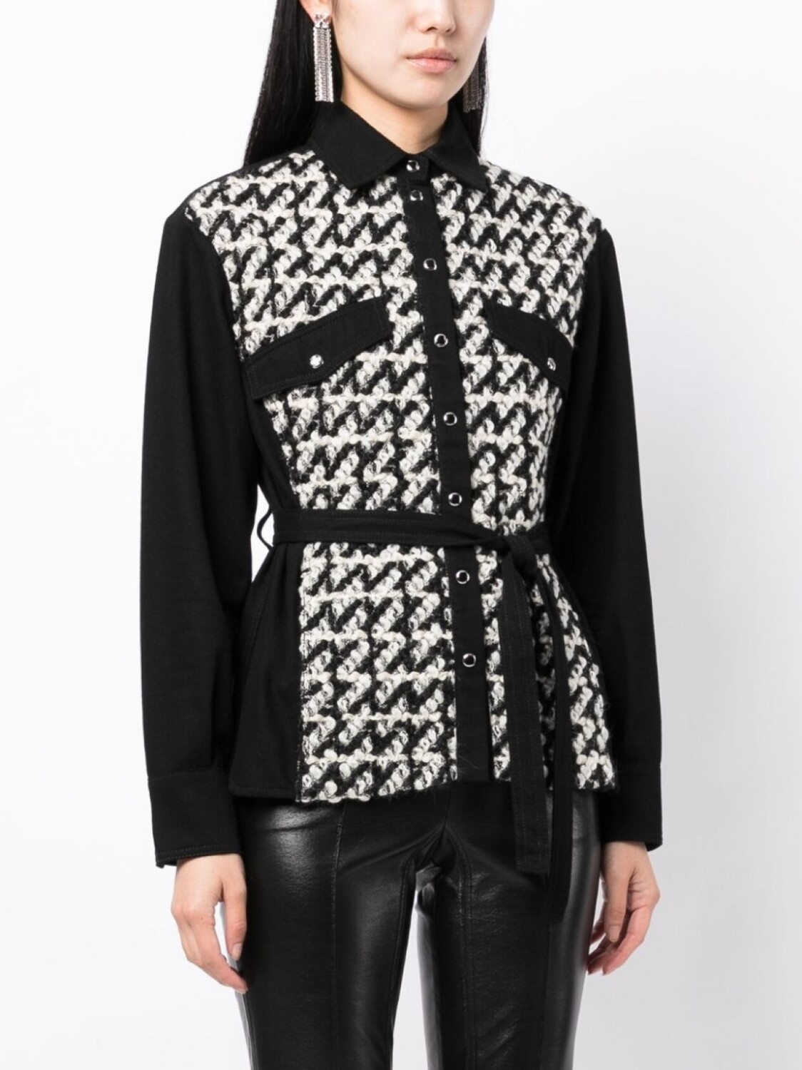 Ткань букле, рукава с манжетами на пуговицах, застежка на кнопках спереди, длинные рукава и два нагрудных кармана с клапанами.