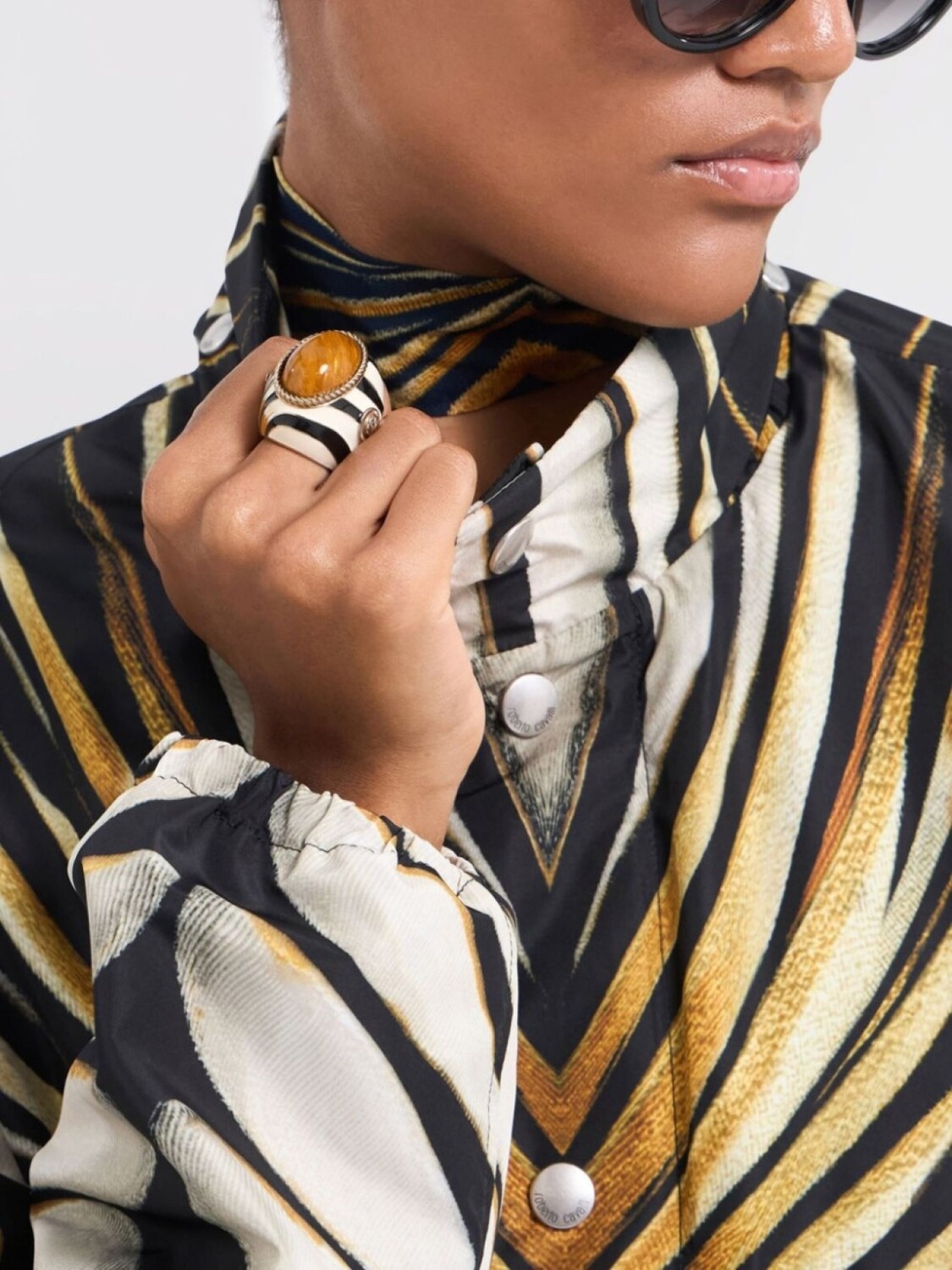 Эмалированное металлическое кольцо Roberto Cavalli, черный