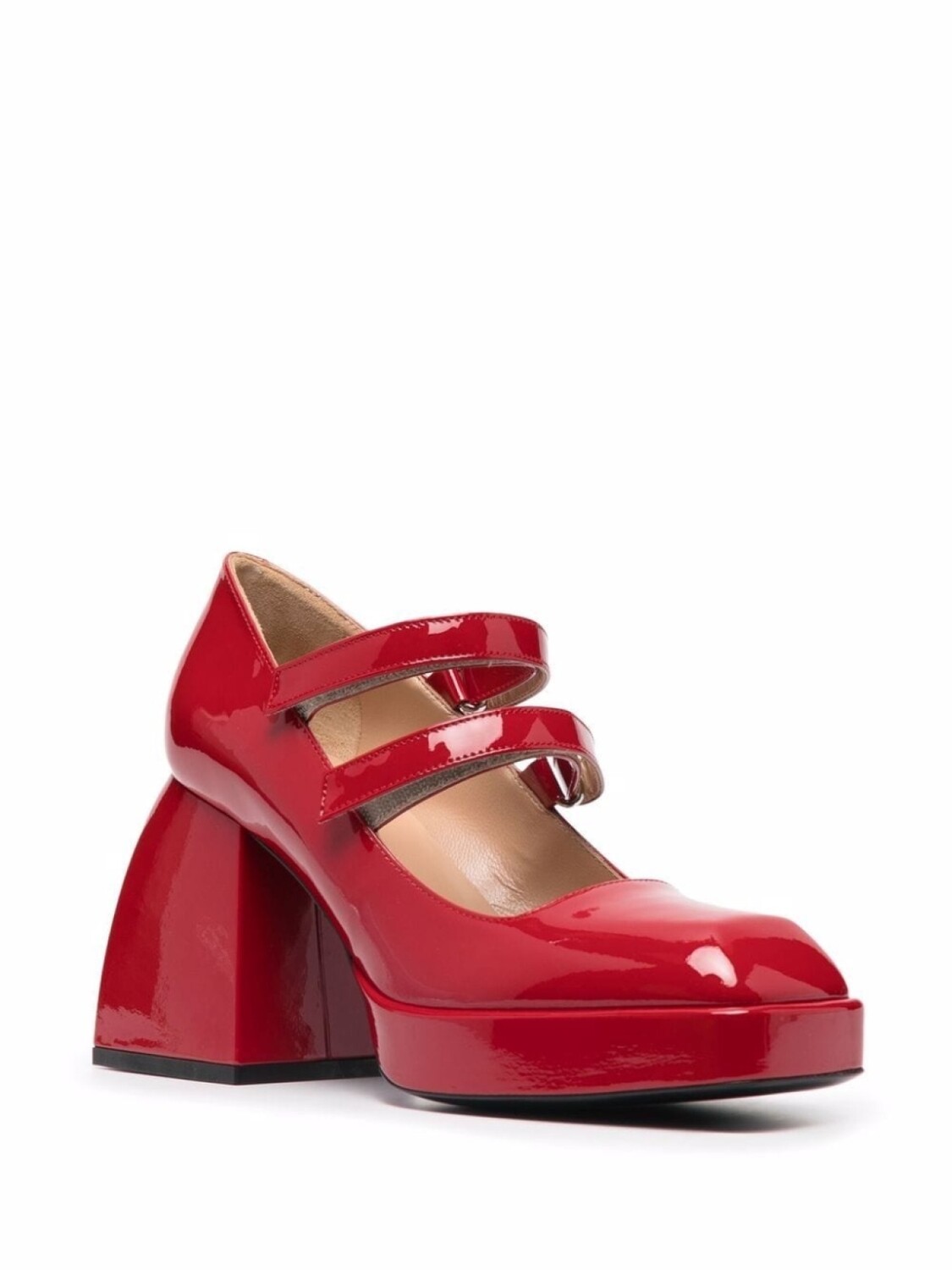 Квадратный носок, браслет в два оборота и наборный каблук средней высоты. Цвет: красный.