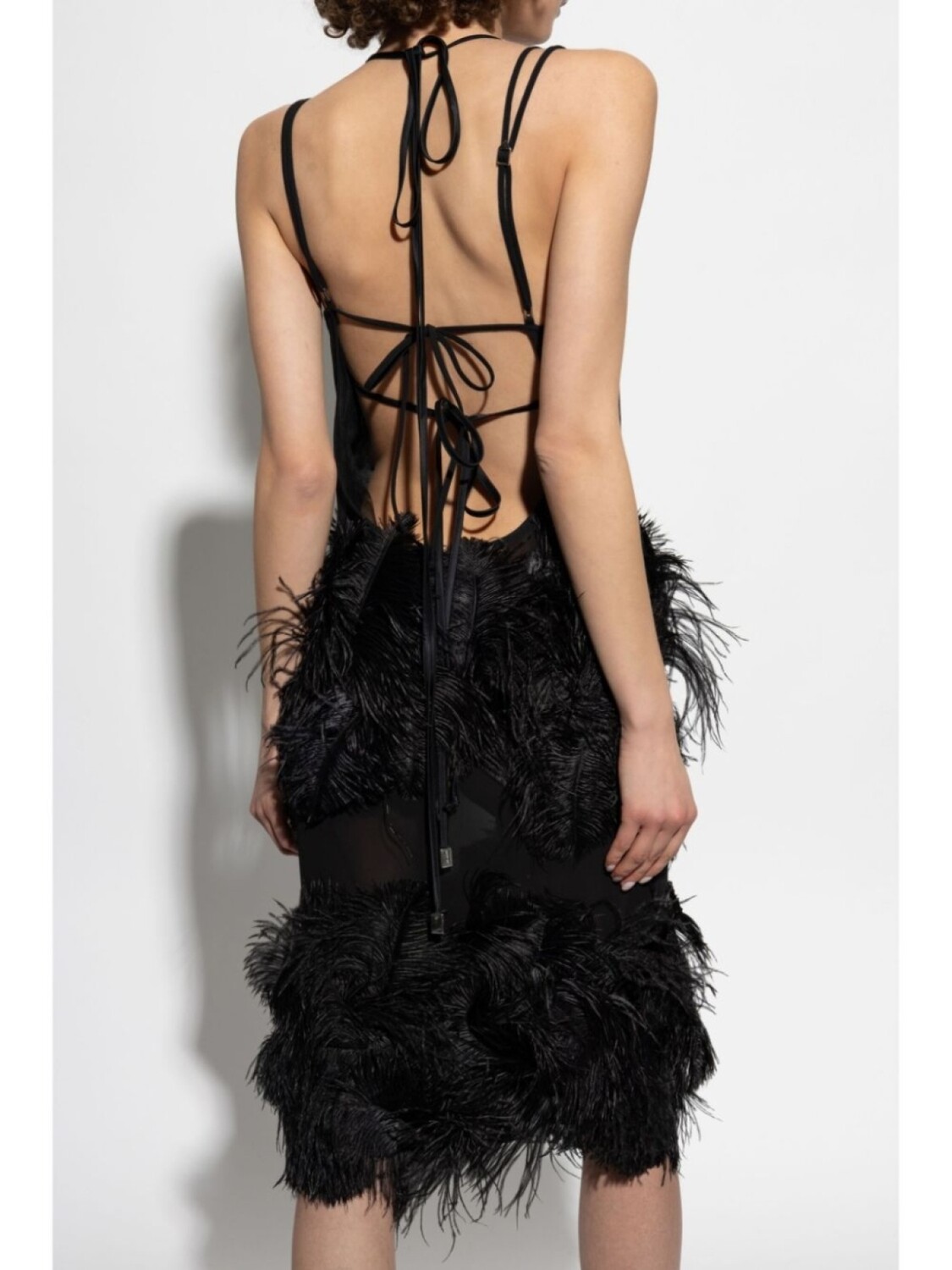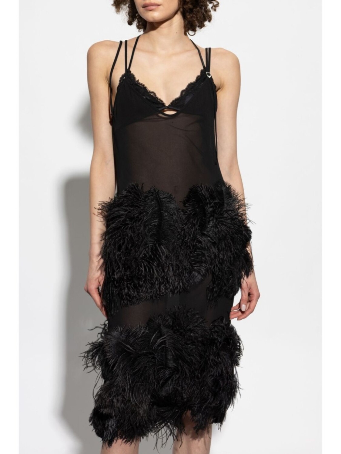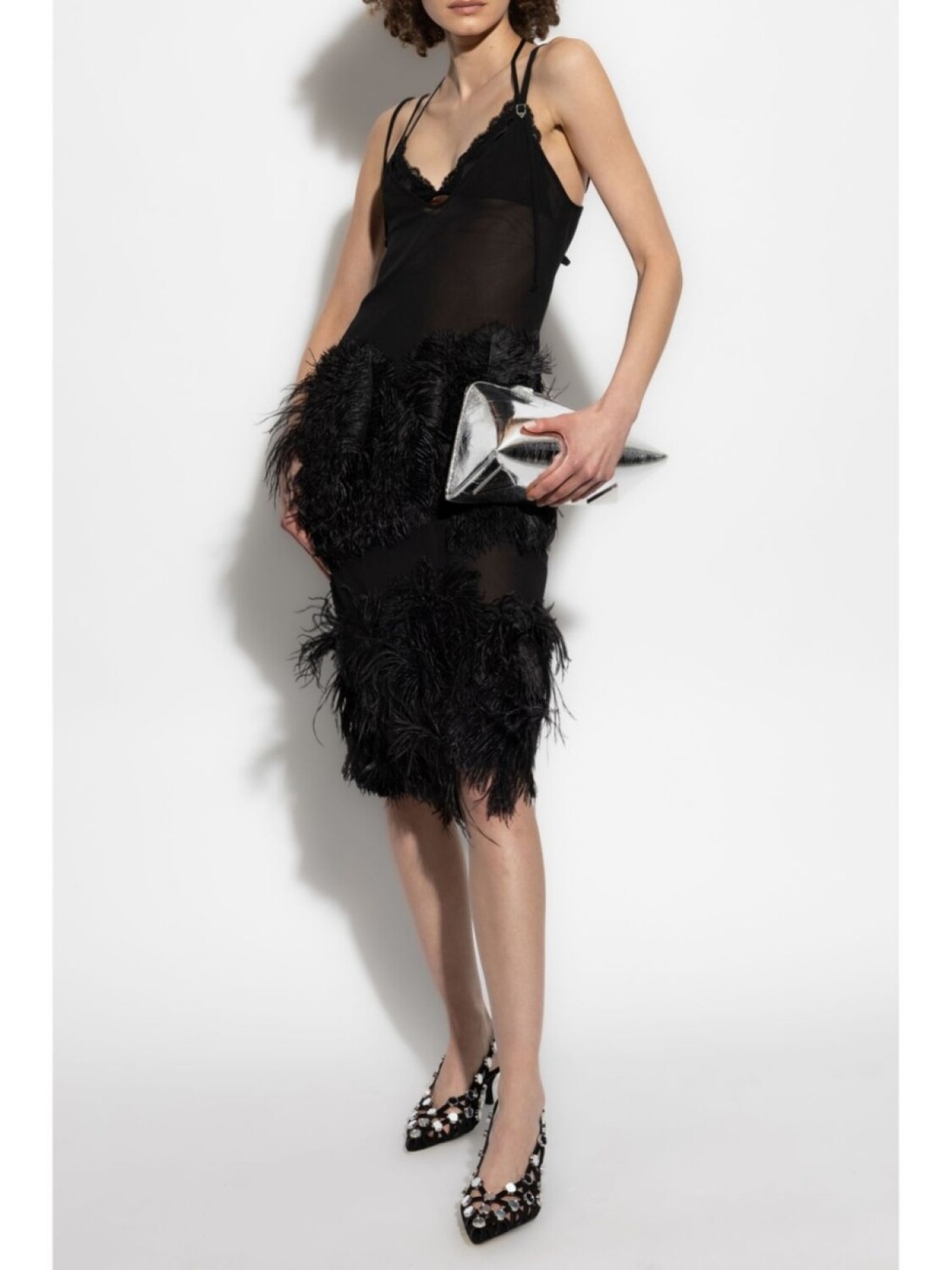 Платье миди с отделкой из страусиных перьев The Attico, черный 98 637₽