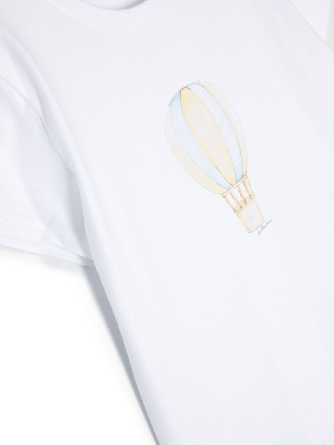 Белый/разноцветный, хлопок, графичный принт спереди, круглый вырез и короткие рукава.