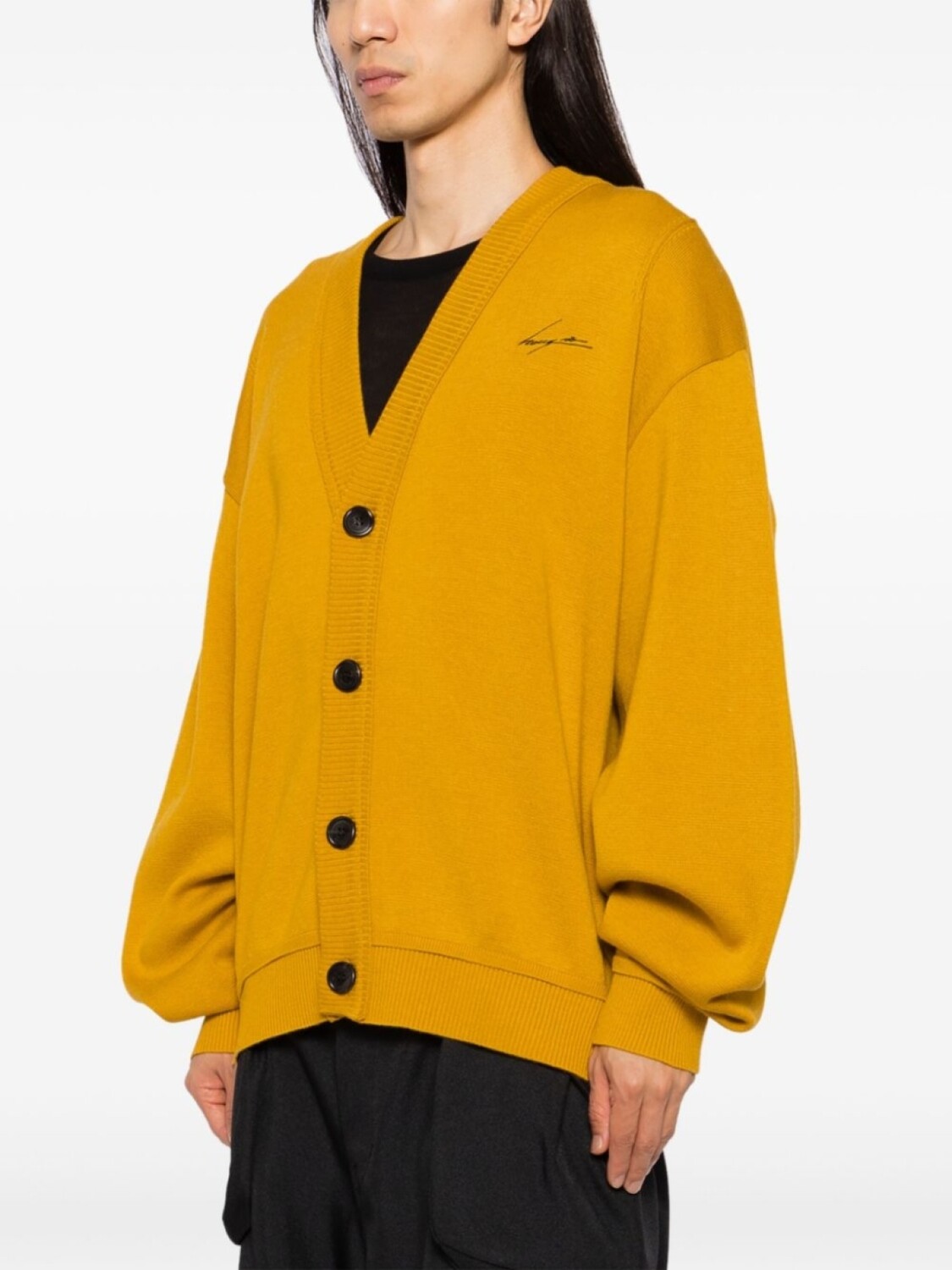 Желтый, застежка на пуговицах спереди, вязаный дизайн, приспущенные плечи, подол и манжеты в рубчик