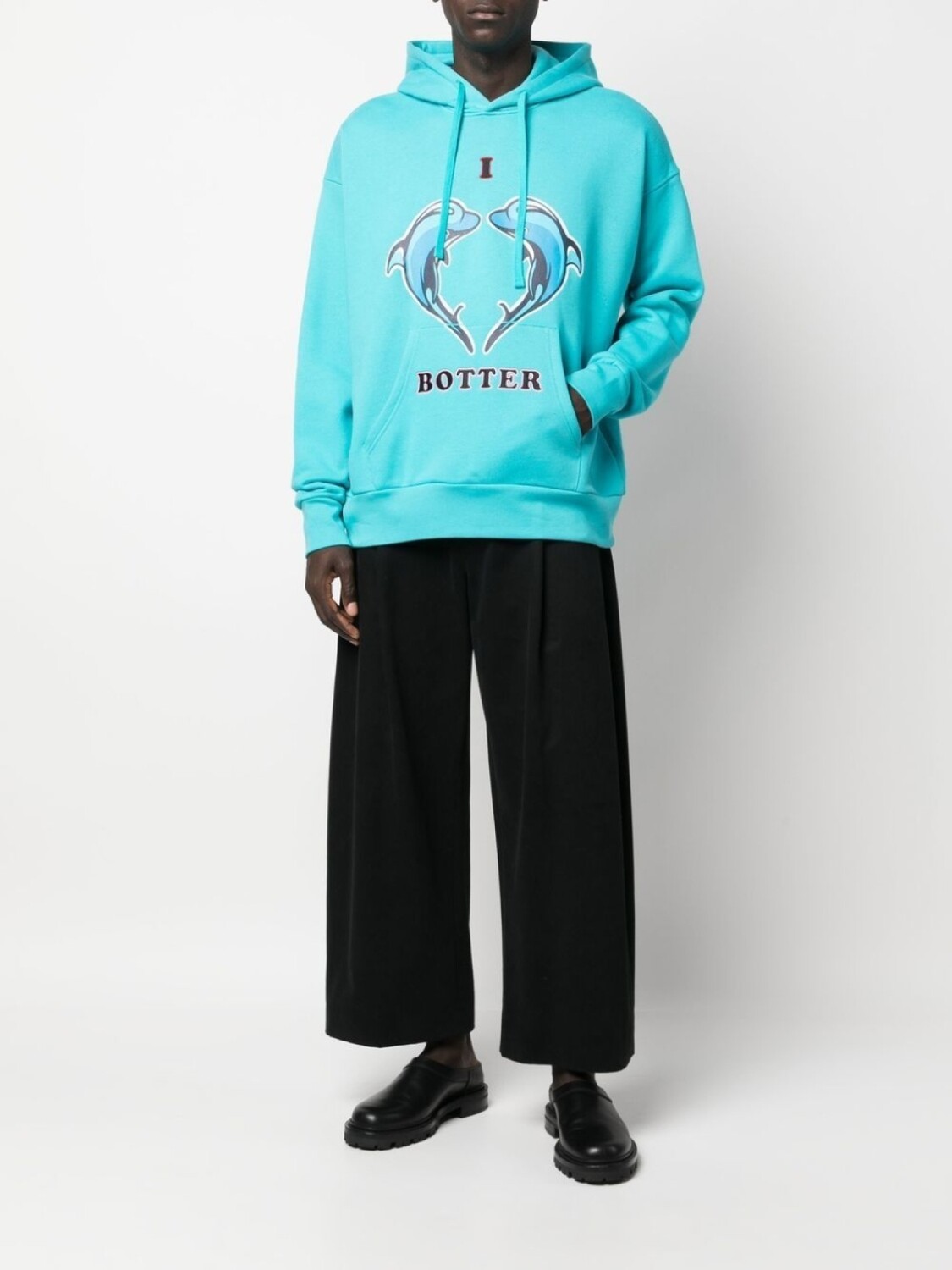 Сине-зеленый, органический хлопок, принт с логотипом на груди, классический капюшон и длинные рукава. Ответственный выбор:
