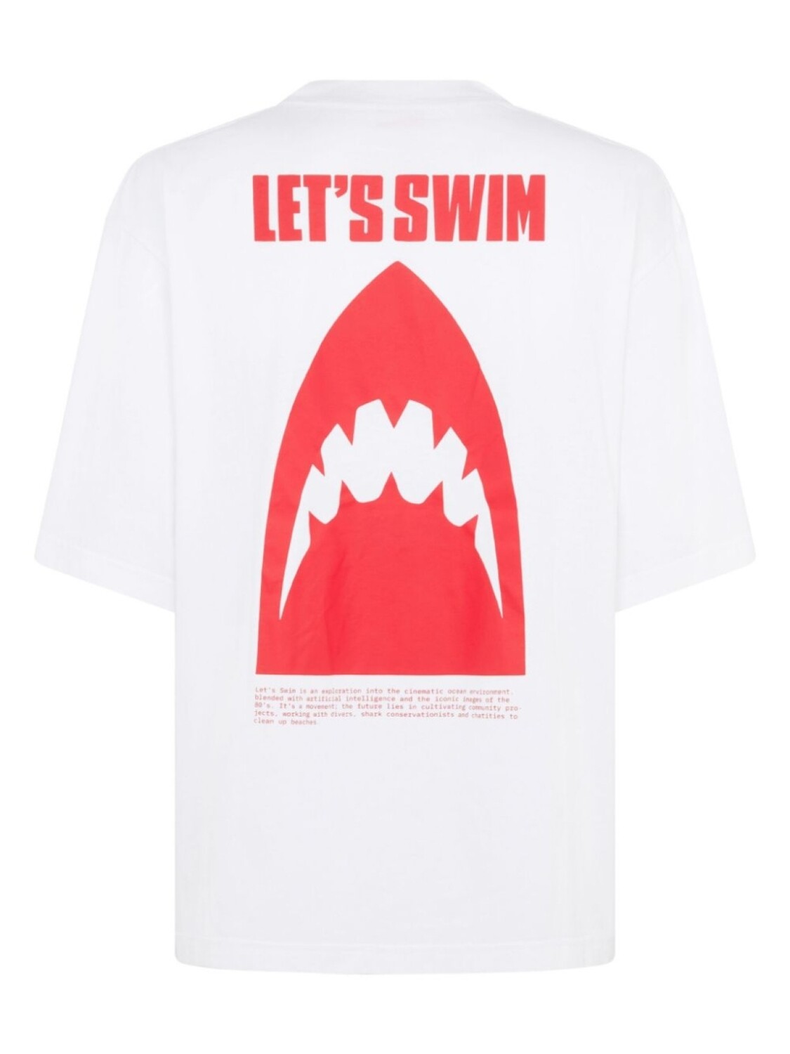 Белый красный органический хлопковый трикотаж текстура логотип в виде акулы принт на груди круглый вырез короткие рукава принт логотипа сзади прямой подол При покупке этого унисекс-изделия имейте в виду, что оно классифицируется по стандартным мужским размерам.