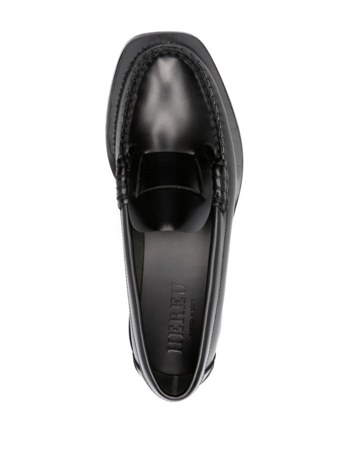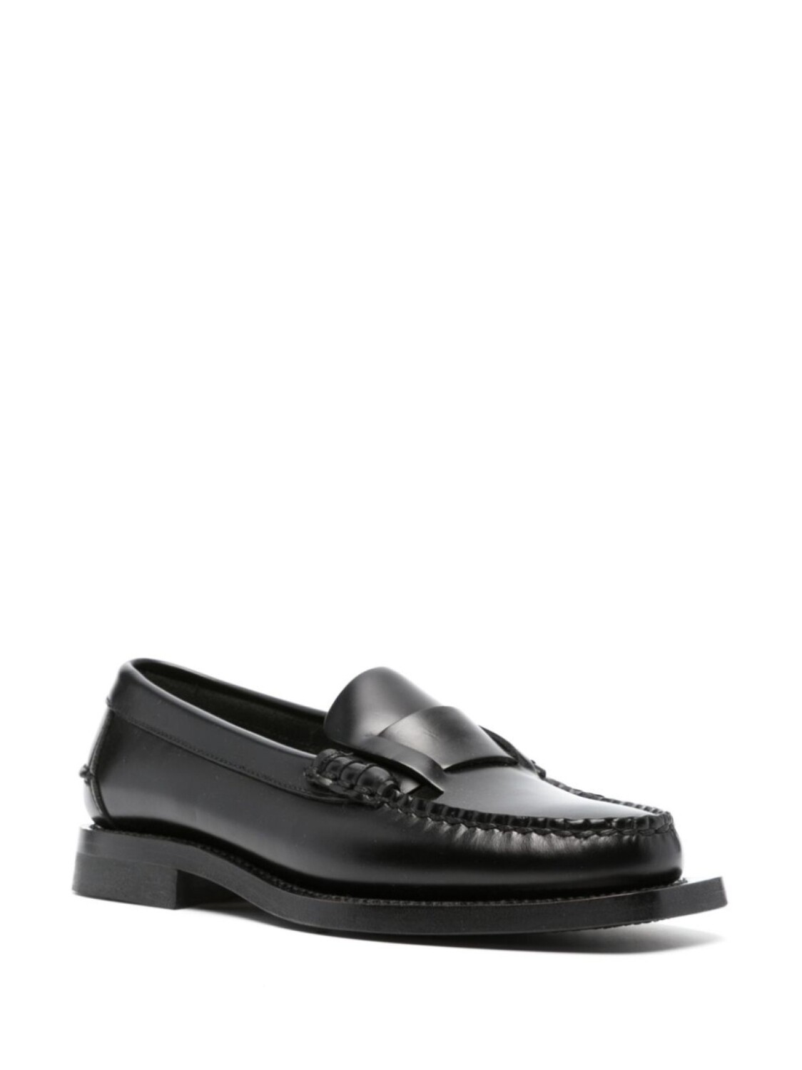 Черный, телячья кожа, ремешки, квадратный носок, кожаная стелька с логотипом, модель без застежки и плоская резиновая подошва.