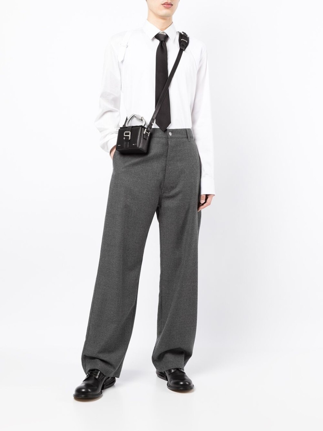 Металлический логотип, съемный регулируемый ремень на плечо и откидной клапан. Цвет: черный.