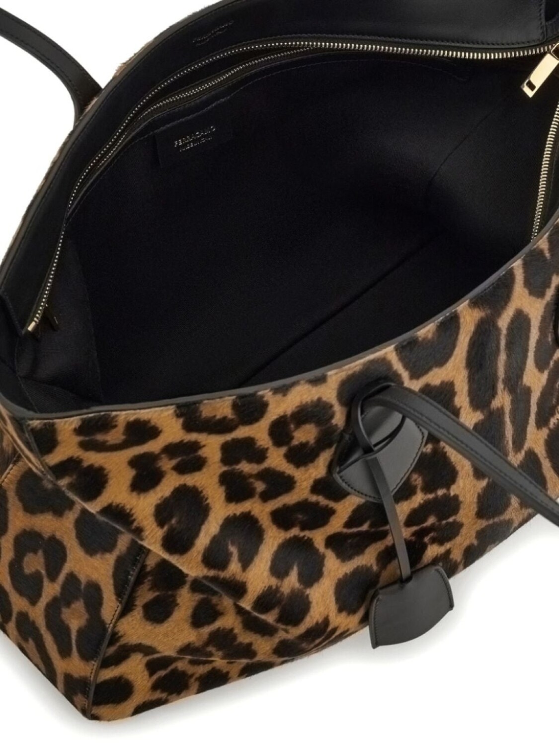 Сумка-тоут с анималистичным принтом Ferragamo, коричневый