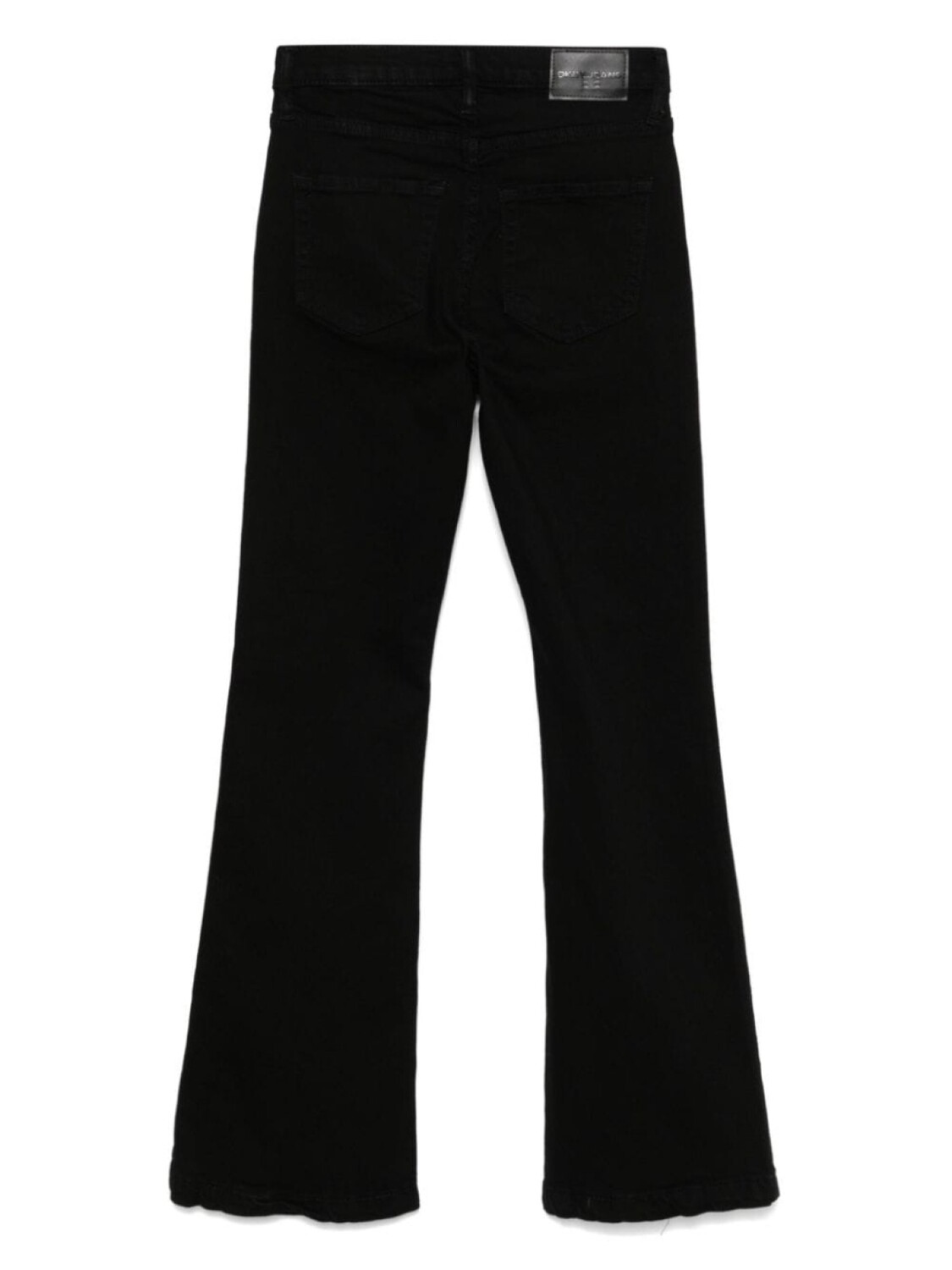 Черный хлопковый деним, потайная застежка на пуговицы, шлевки для ремня, высокая посадка, пять классических карманов, нашивка с логотипом сзади, узкий покрой, расклешенный подол