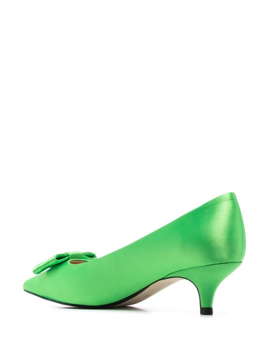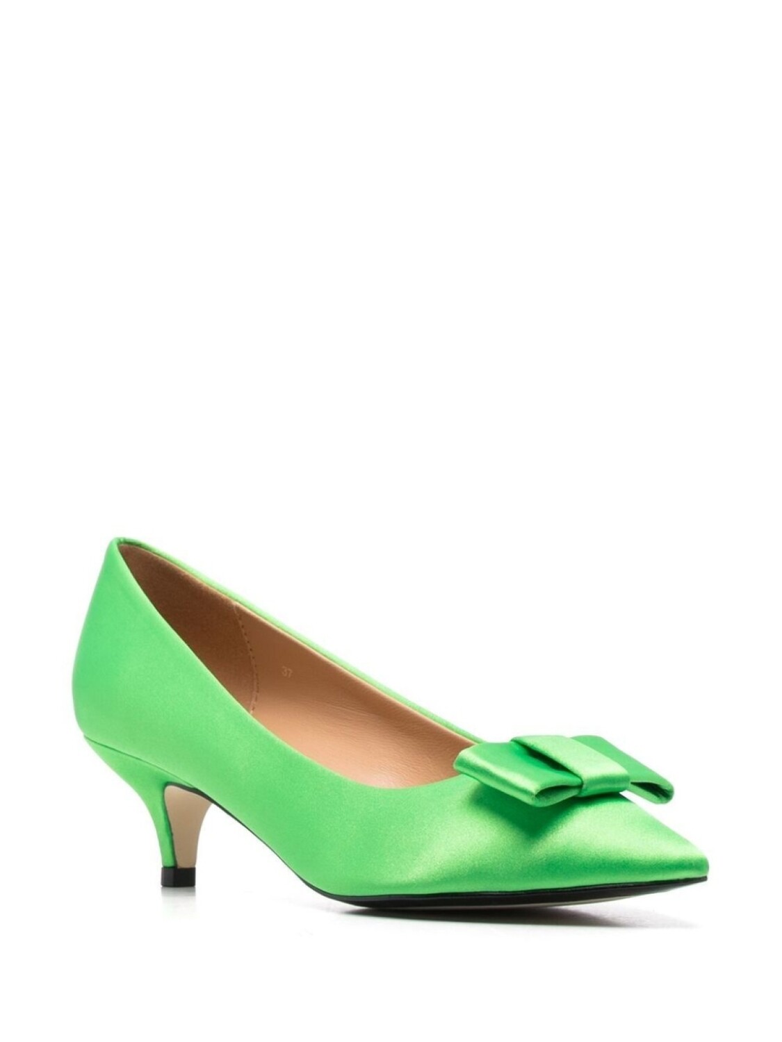 Зеленый, Кожа, бант, заостренный носок, модель без застежки, стелька с логотипом и низкий каблук.