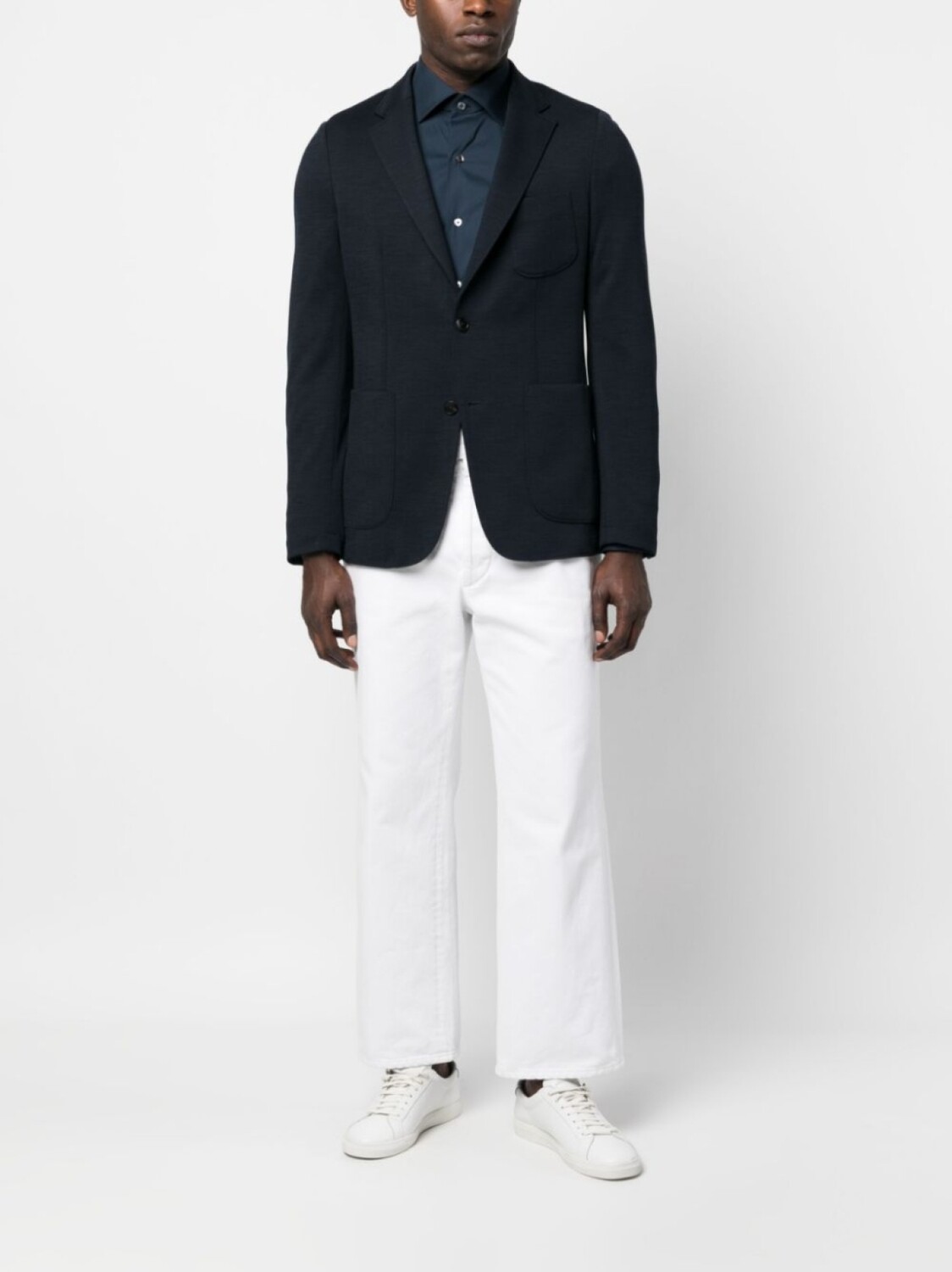 Темно-синий, смесовый хлопок, классический воротник, застежка на пуговицах спереди, длинные рукава, манжеты на пуговицах и закругленный подол.