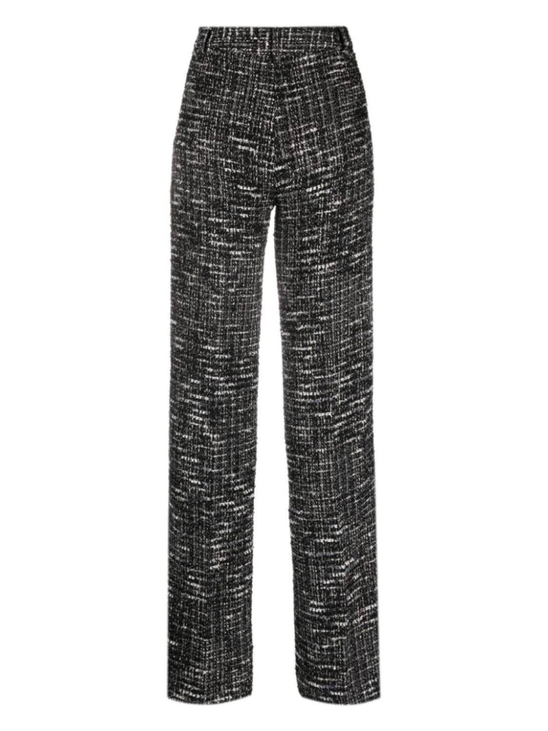 Черный/белый, смесовый хлопок, твидовая ткань, завышенная талия, потайная застежка спереди, петли для ремня, прямой крой и прямой подол.