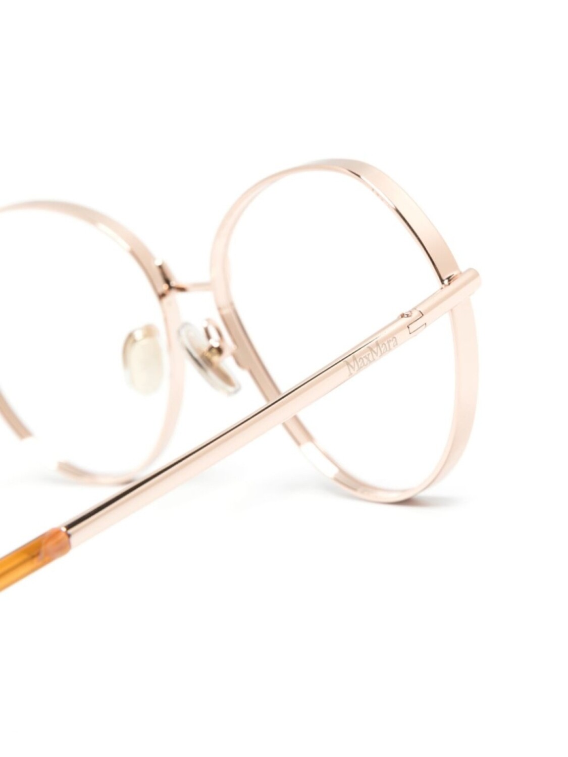 Золотистый, металл, оправа геометрической формы, прозрачные линзы, носоупоры, гравированный логотип на дужках, прямые дужки с закругленными концами, В комплект входит защитный чехол для очков., Обратите внимание, что на FARFETCH продаются оправы с линзами без диоптрий.