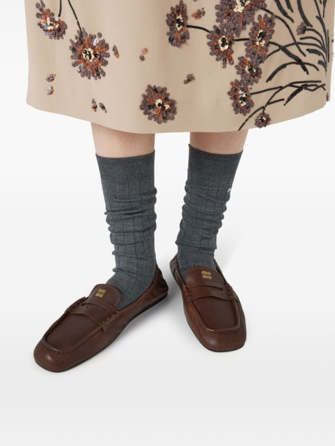 Лоферы с тисненым логотипом Miu Miu, коричневый