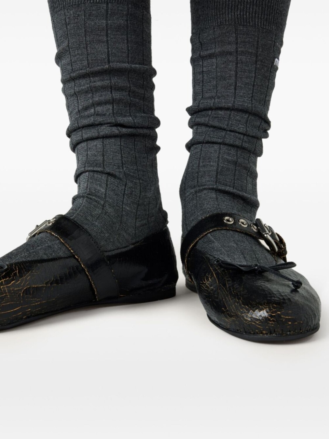 Балетки из потрескавшейся кожи Miu Miu, коричневый