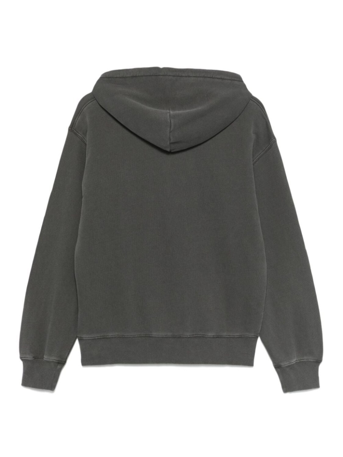 Антрацитово-серый хлопковый трикотаж, фактура, окрашенный в готовом виде, с эффектом выцветания, затягивающийся капюшон, спущенное плечо, длинные рукава, логотип, подкладка из французского трикотажа, ребристые манжеты и подол