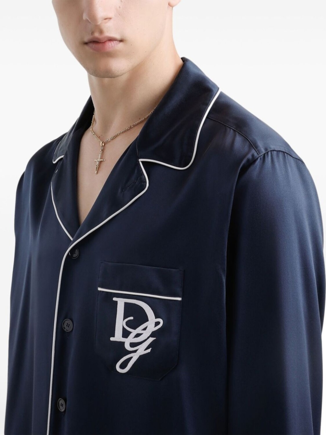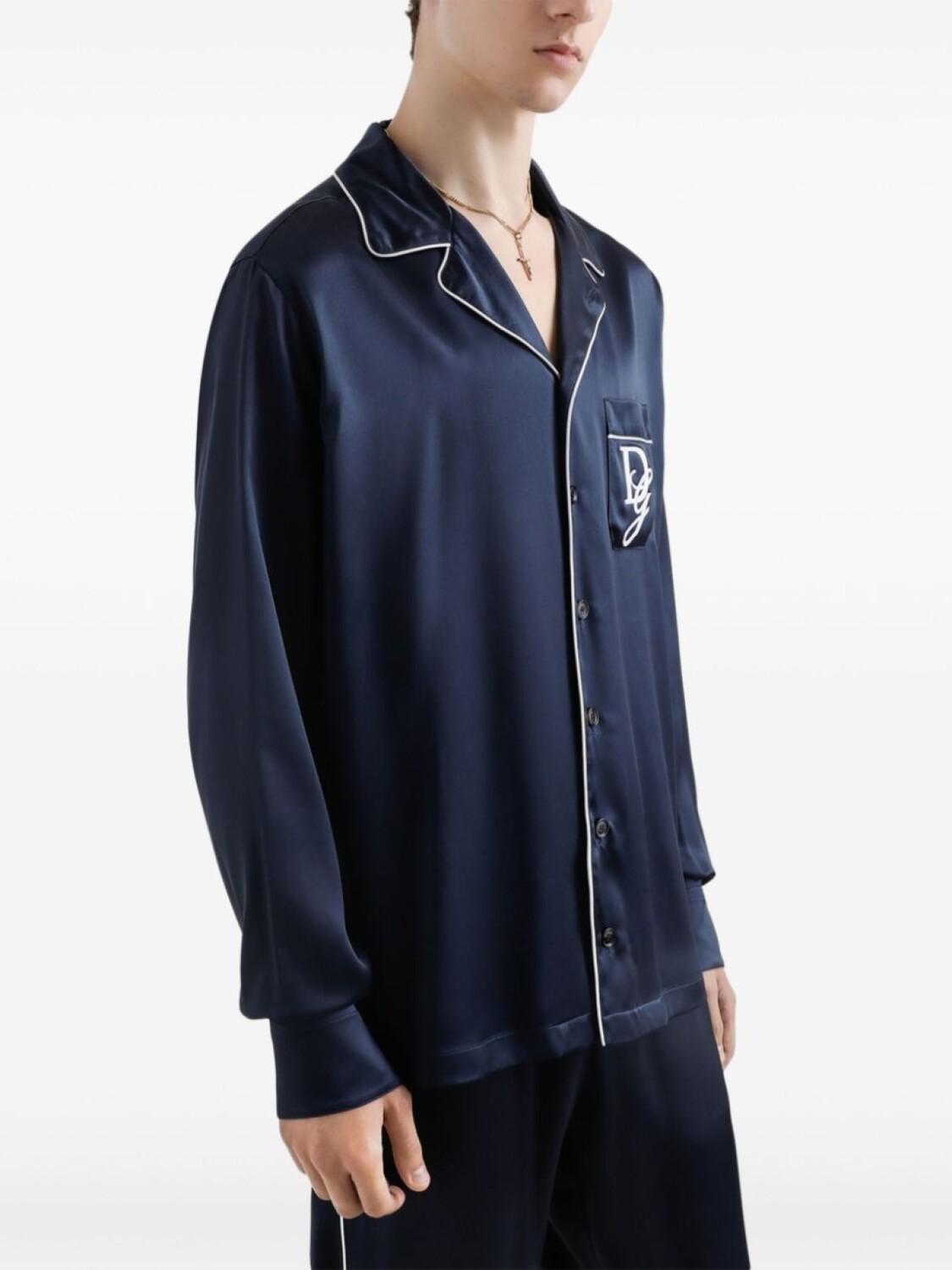 Рубашка с вышитым логотипом Dolce & Gabbana, синий