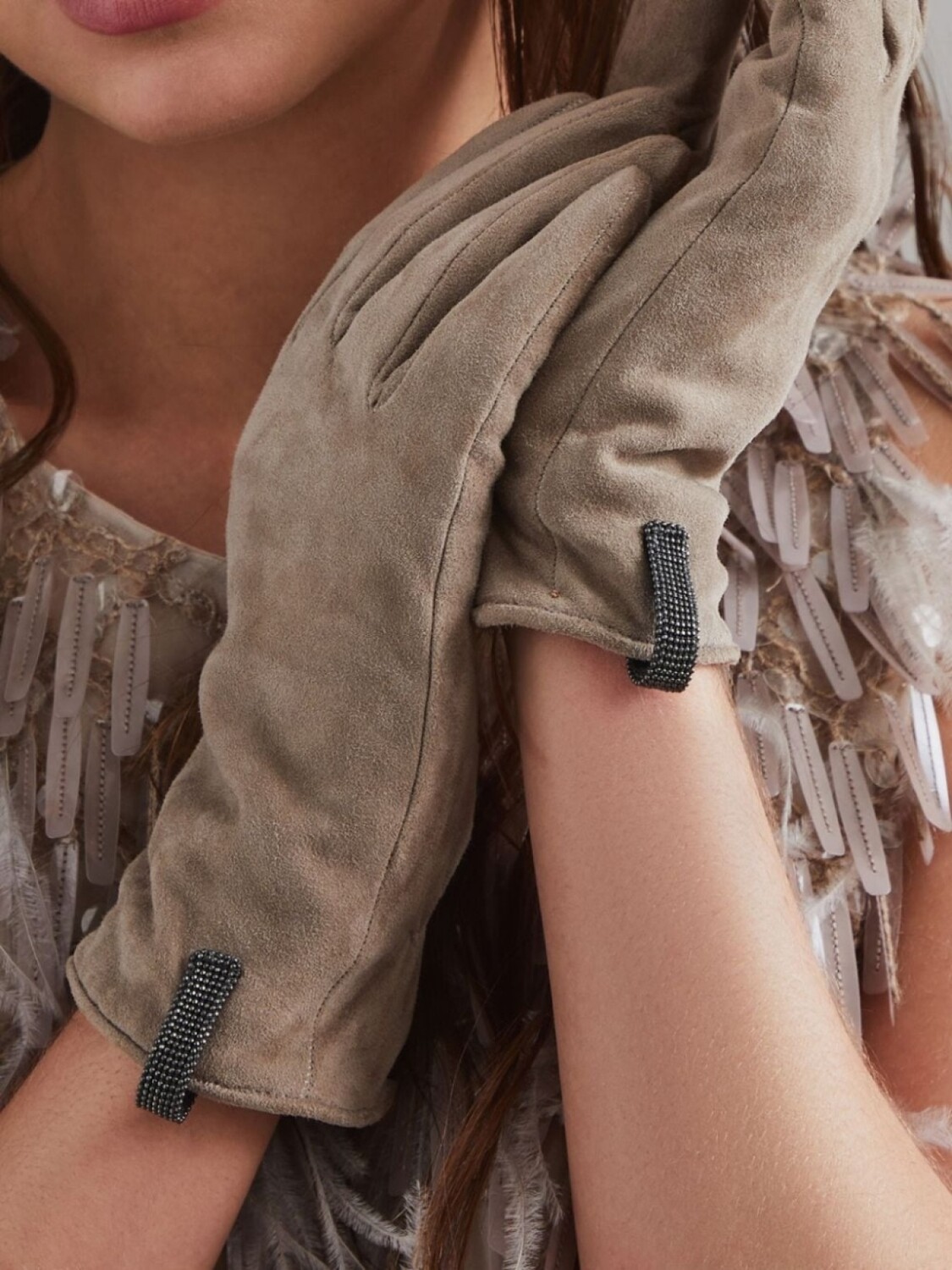 Замшевые перчатки Brunello Cucinelli, нейтральный цвет 105 212₽