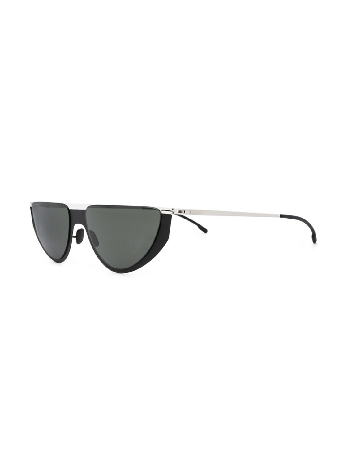 Солнцезащитные очки 'Mykita + Martine Rose Selina' от Mykita. Оправа 'кошачий глаз', затемненные линзы, носоупоры, 100% защита от ультрафиолета А и В и прямые дужки с изогнутыми концами. Цвет: темно-серый с черным. Модель в стиле унисекс. Прилагается защитный чехол.
