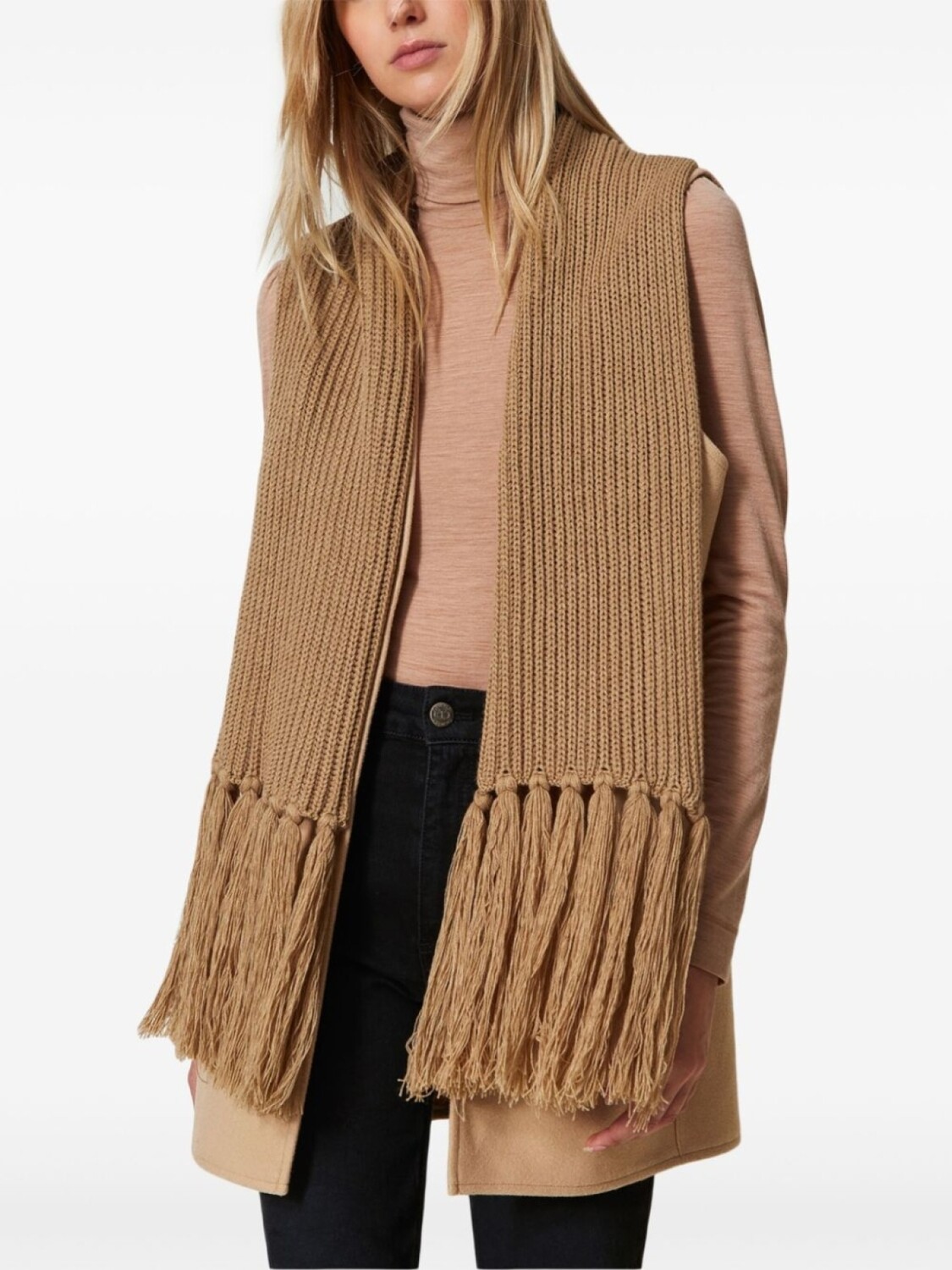Вязаный шарф с бахромой TWINSET, коричневый 11 640₽