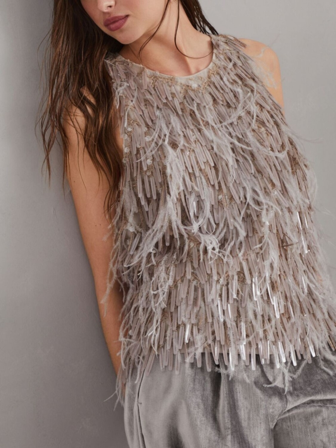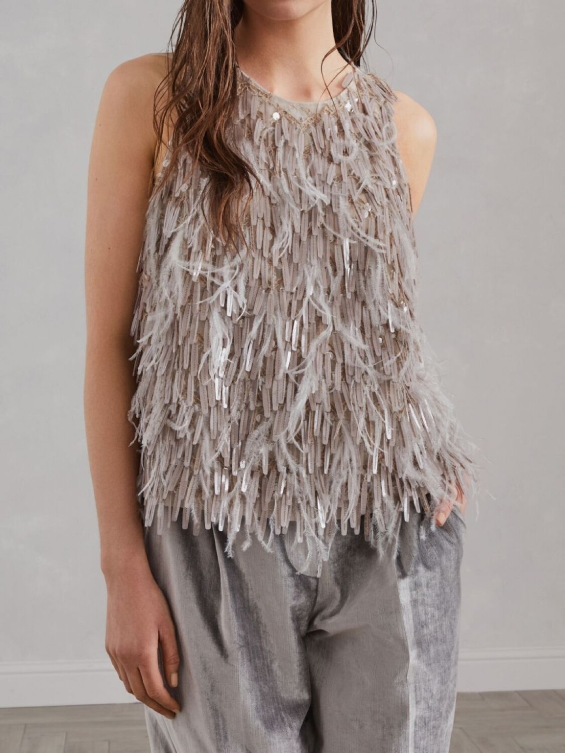 Топ Dazzling с вышивкой Brunello Cucinelli, нейтральный цвет