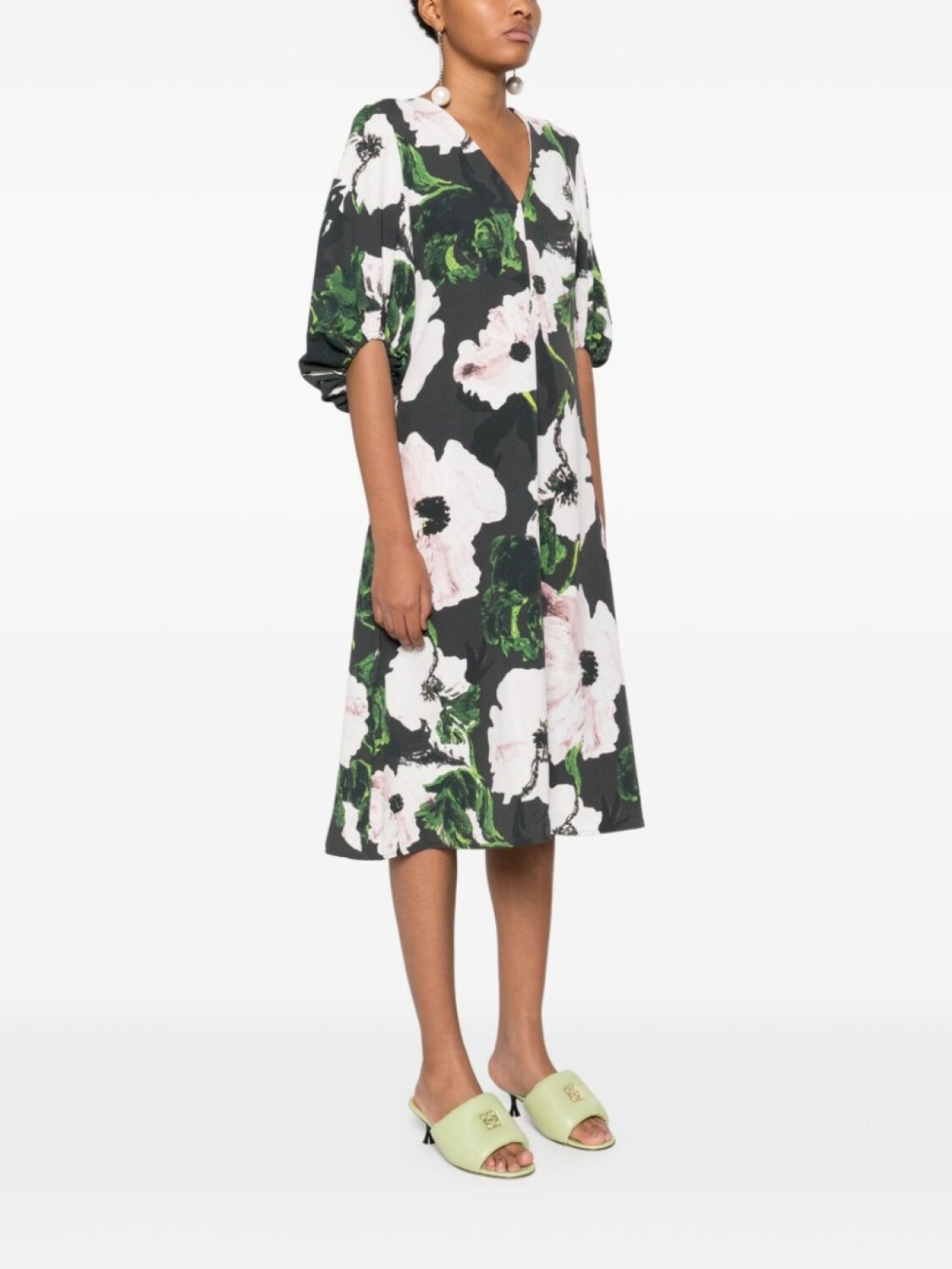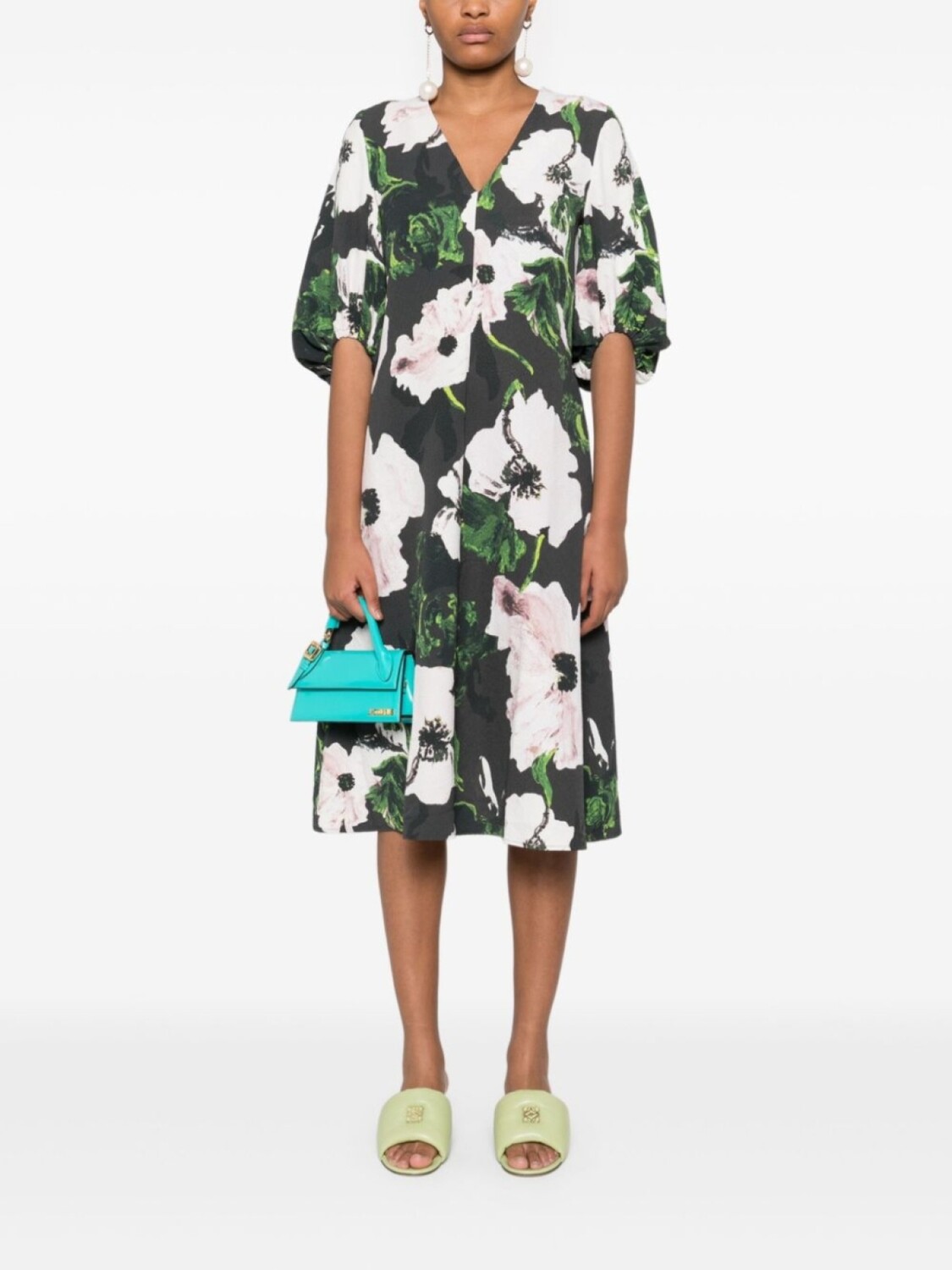 Платье миди Umber Windflower с объемными рукавами Stine Goya, черный