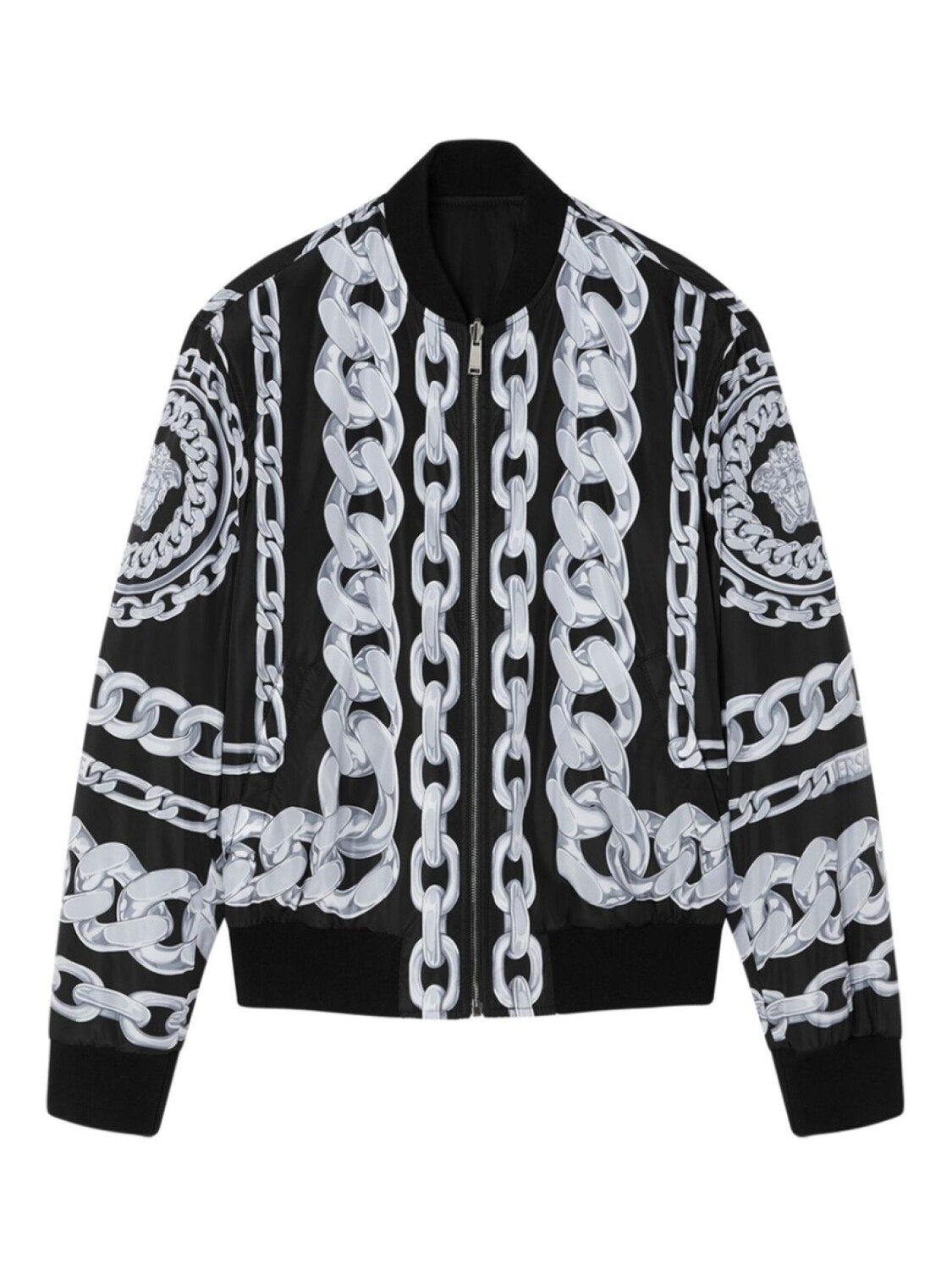 Куртка-бомбер с принтом в виде звеньев цепи Versace, черный